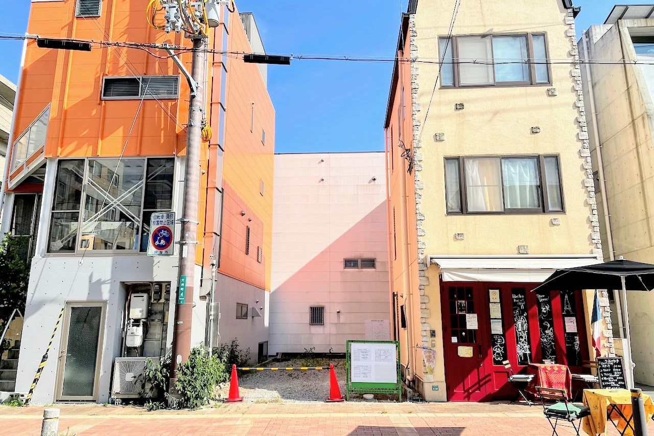 向かって左隣は居酒屋「ほーきや」、右隣はカフェ・ビストロ「Mimi et Gege(ミミエジェジェ)」です。