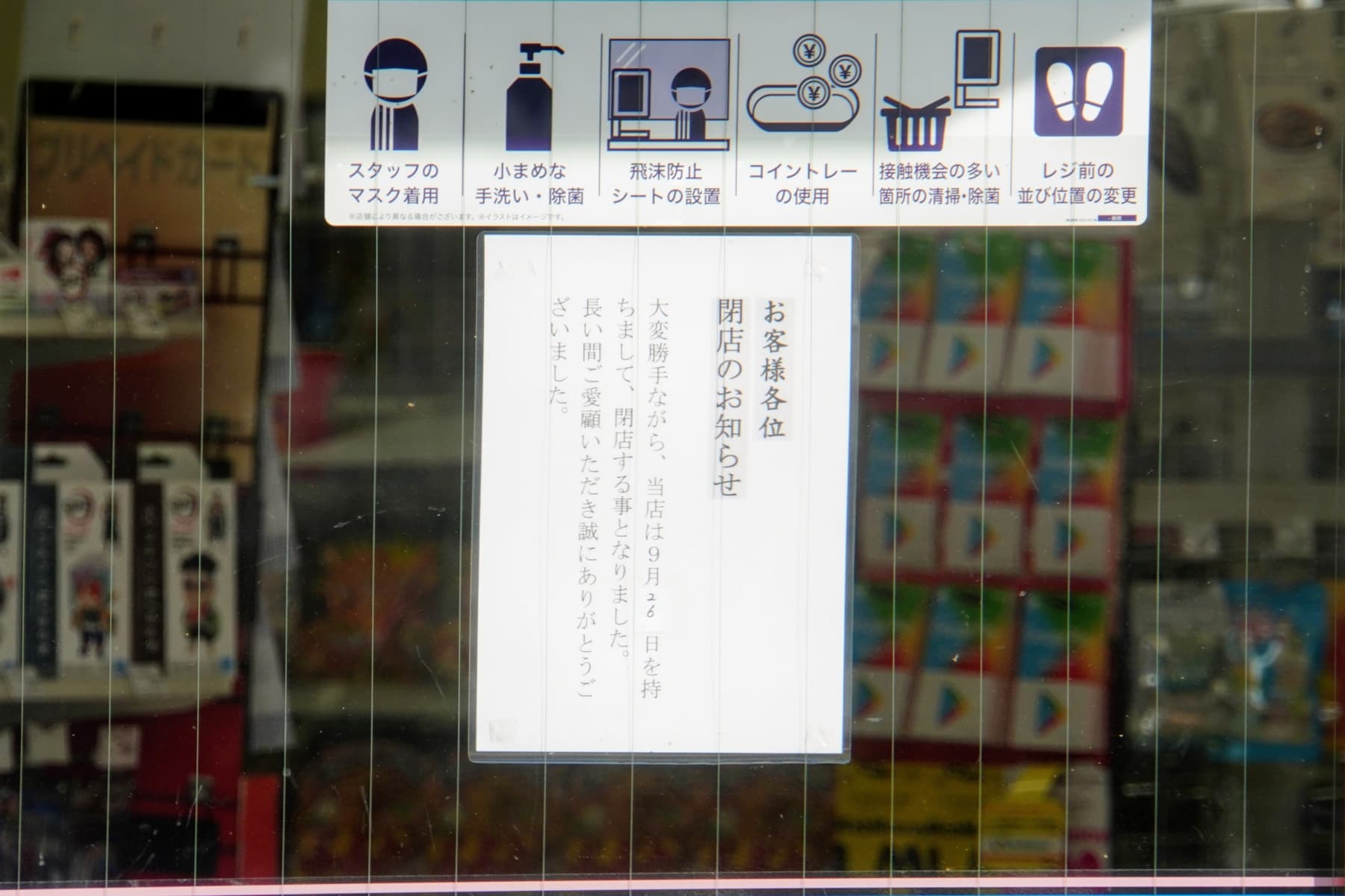 ↑入り口ドアに「閉店のお知らせ」が貼ってあります。