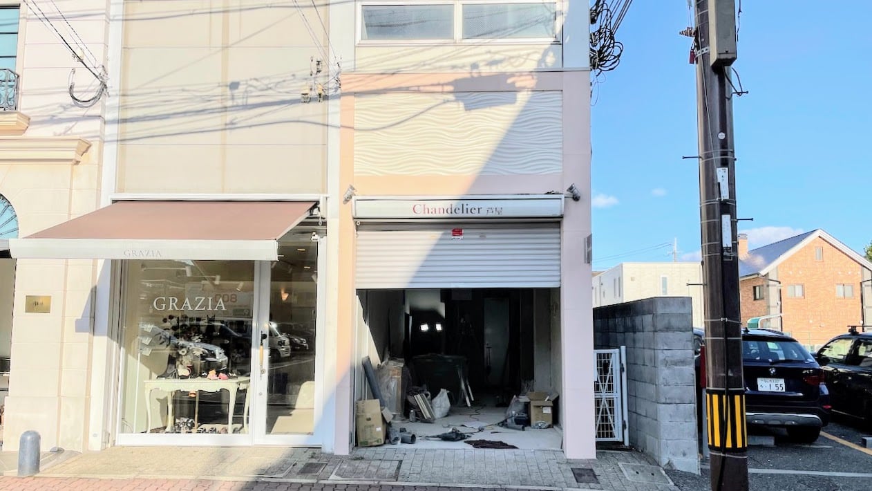 ↑オープン予定地の様子。ブティック「Chandelier(シャンデリア) 芦屋」の跡地です。