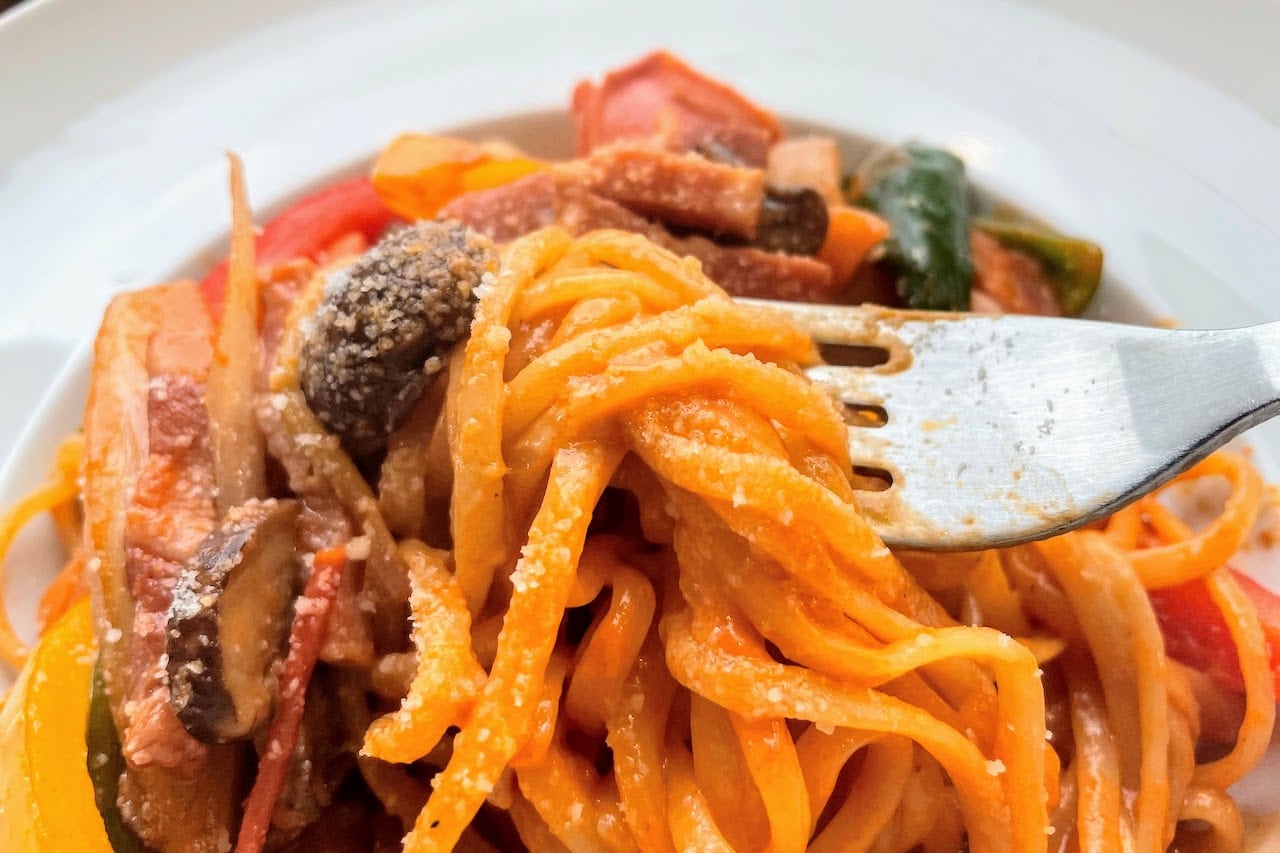 「Green Yard」の「パスタランチA・ベーコンと野菜のクリーミーナポリタン」