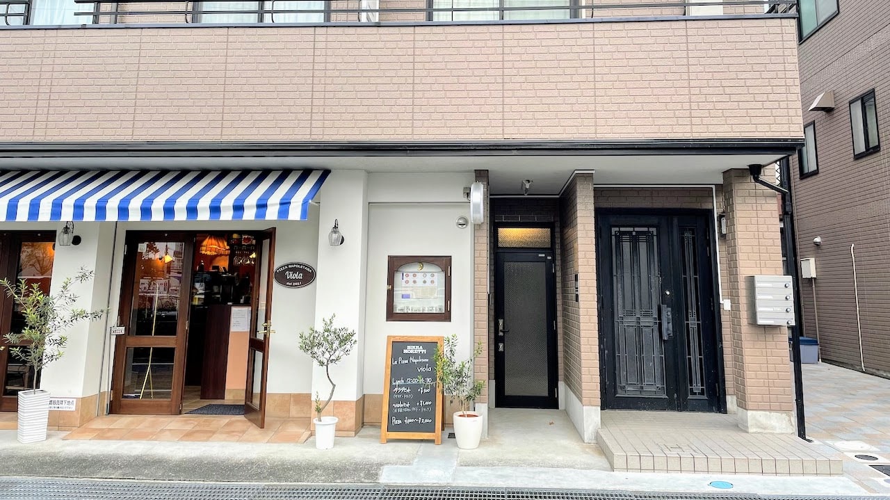 ↑今年5月にオープンした薪窯ピザ店「Viola」が入る建物です。