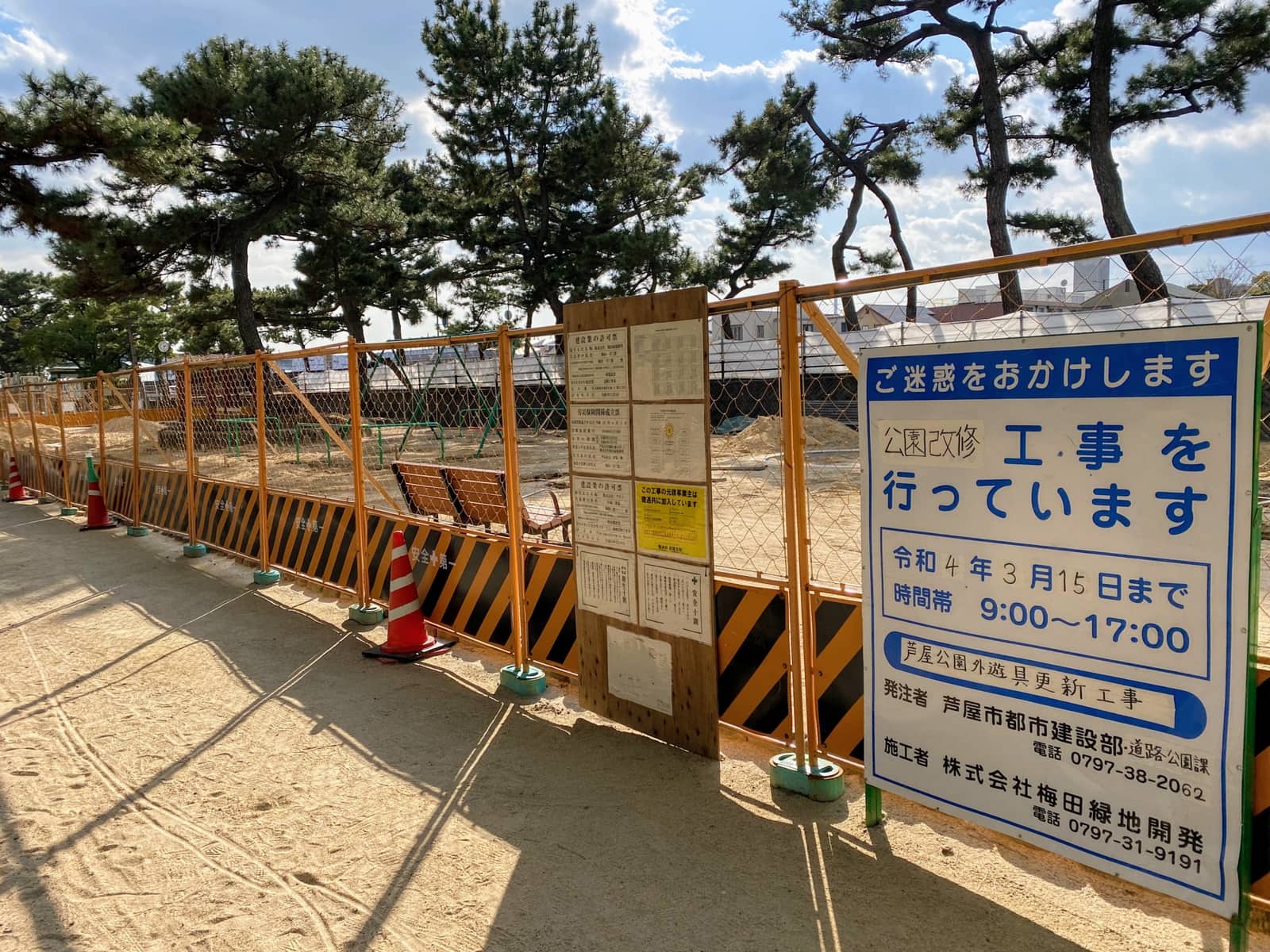 芦屋公園の遊具が改修工事のため使えなくなってる