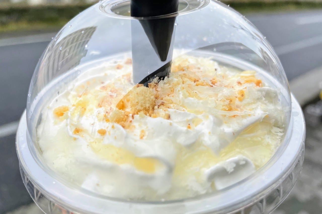 チーズケーキ味のドリンクに、ねっとりとろける生わらび餅が入っています!
