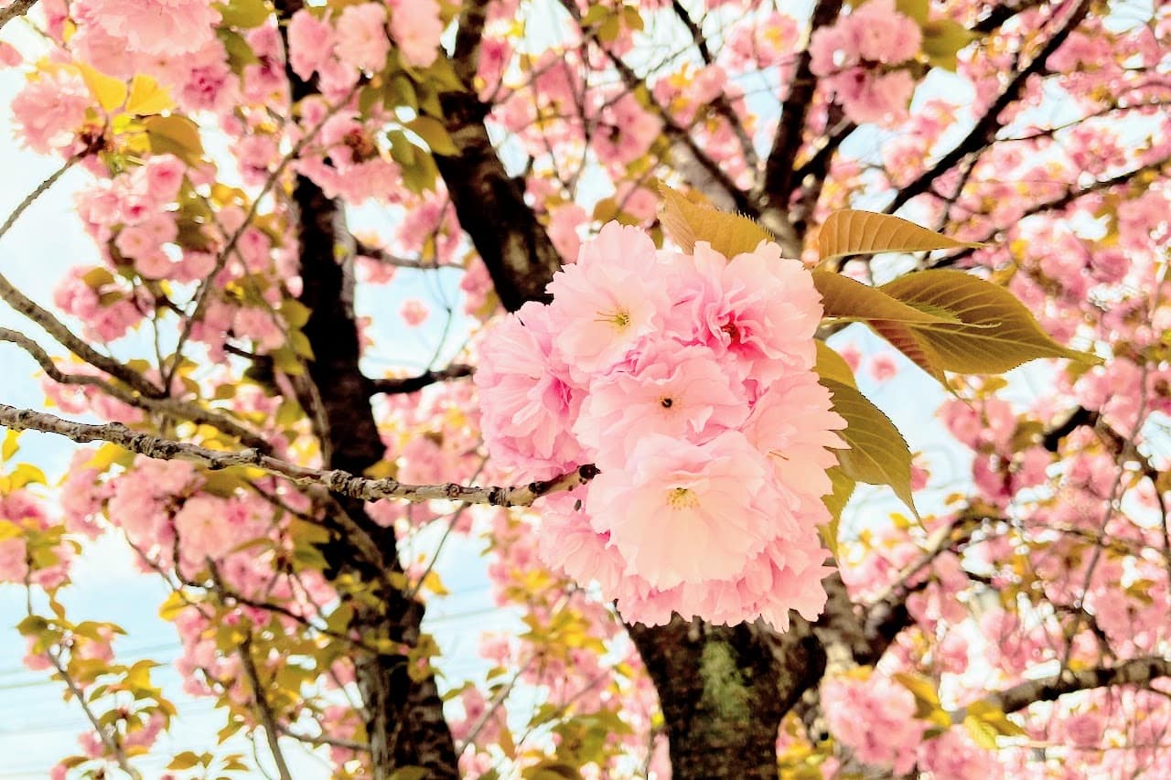 ↑ソメイヨシノは散ってしまいましたが、八重桜の並木はまだまだ楽しめそうですね!