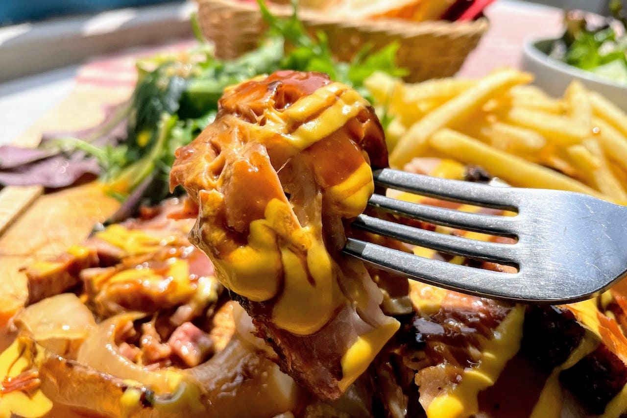 「バラッカASHIYA」のお肉ランチ「豚バラ肉のとろ〜りB.B.Q.」