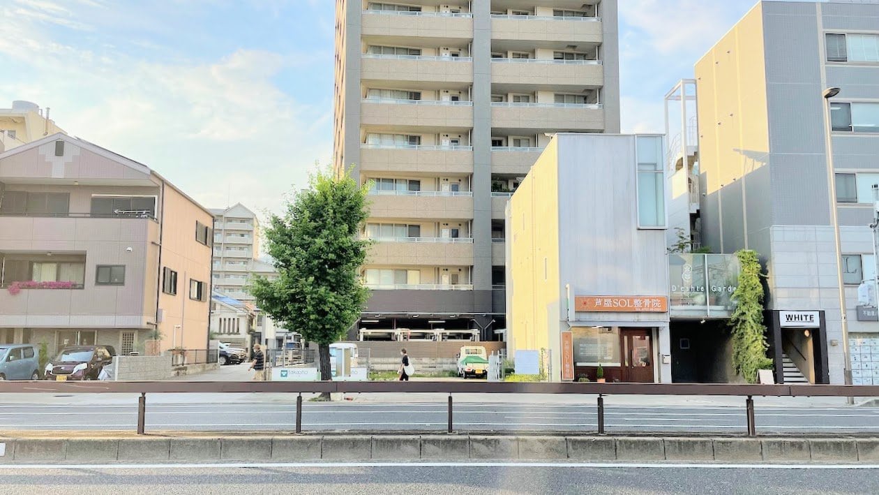 ↑反対側(西)へ行くと、現在建替え中の「神戸トヨペット芦屋店」や、ベーカリー「ビゴの店 芦屋 本店」などがあります。