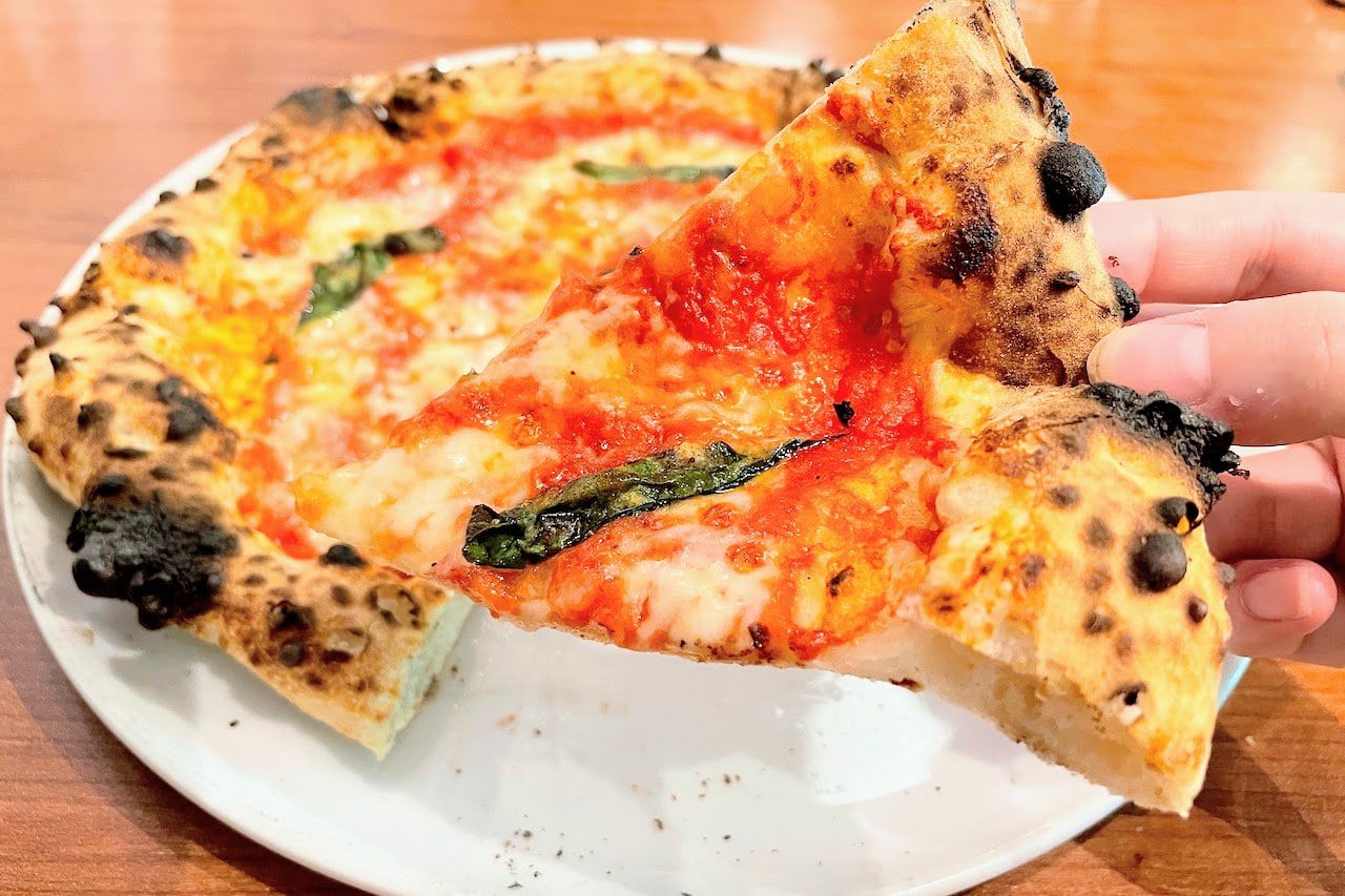 熱々のピッツァの耳をつまむと…触った段階からめっちゃカリッとしてるのがわかります!クリスピー!耳好きとしてはこれは嬉しい〜!そして中はもちもち!