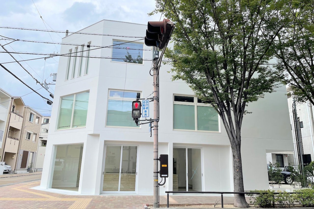 ↑鳴尾御影線沿い、三八通りとの交差点の北東角に建った白いビルの2階です。