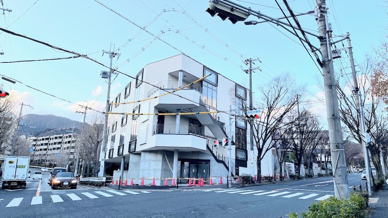 ↑宮川けやき通りとあさひ線の交差点、北側の角地に建設中のビル。以前は「THE ASHIYA GARDEN HILLS」という結婚式場があった場所です。