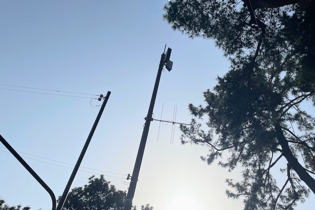 ↑芦屋公園・鵺塚橋近くの屋外拡声子局(屋外スピーカー)