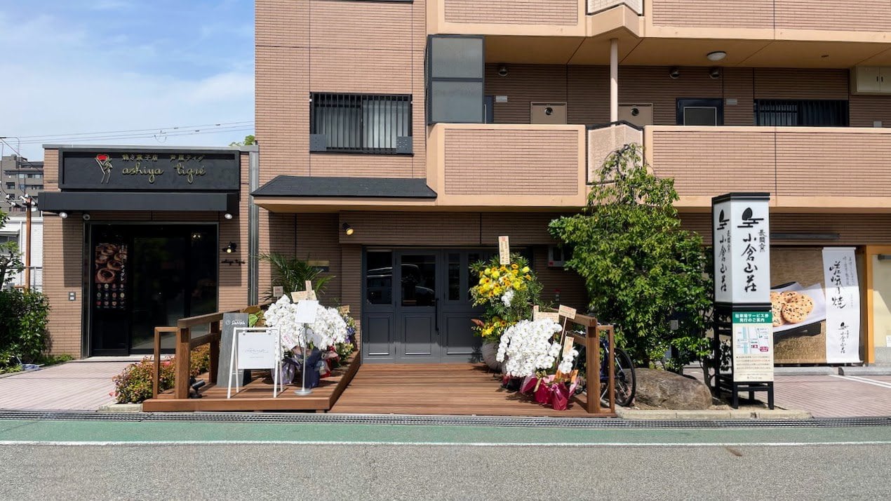 ↑左隣は昨年12月にオープンした焼き菓子店「芦屋ティグ」、右隣は和菓子店「小倉山荘 芦屋店」です。