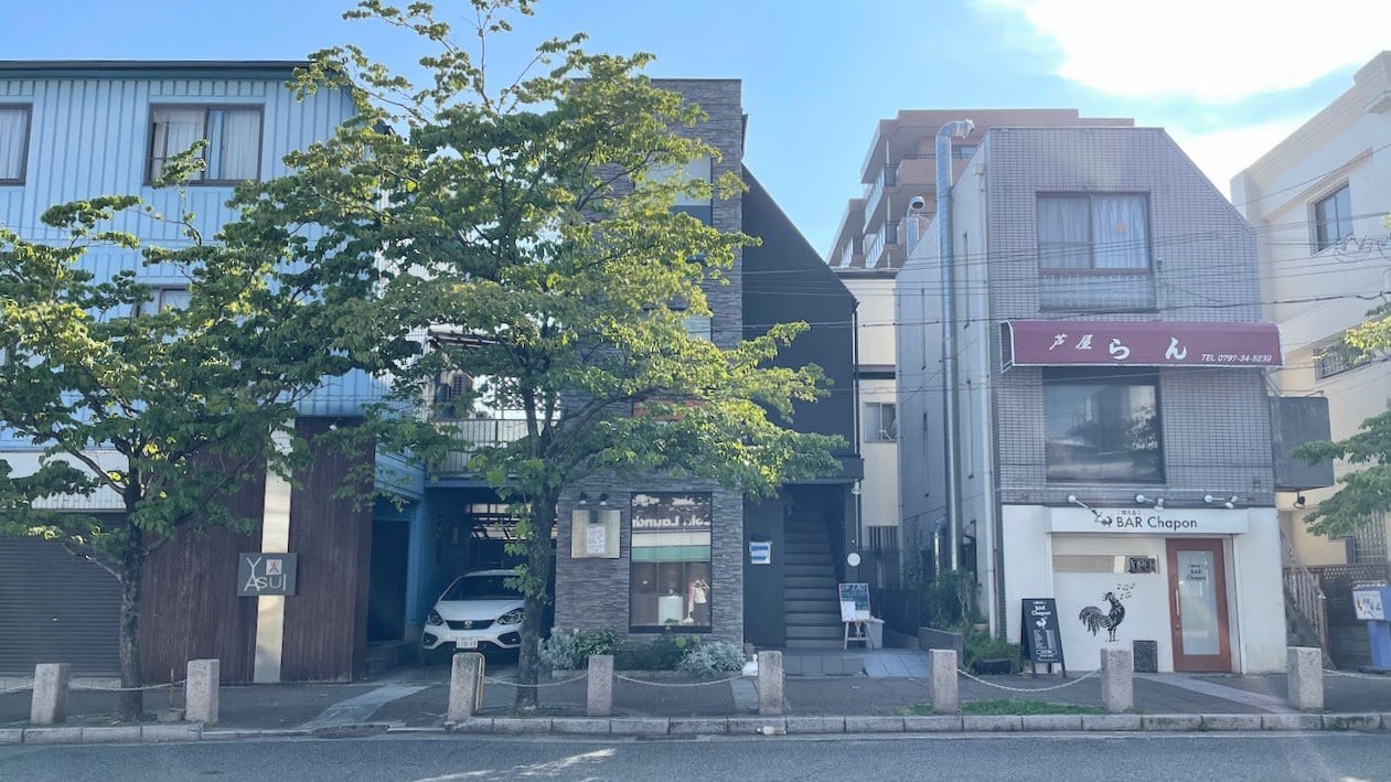 ↑花水木通りの西側に面した建物1階です。2階には「cafe&bar・LAO」、向かって左隣は「ヘアースタジオYASUI」、右隣には「唄えるBAR シャポン」があります。