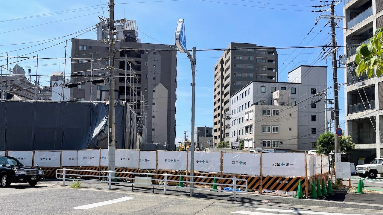 この場所はJR芦屋駅南側の再開発事業の一環としての工事も行われているので、道幅を拡大した後の余った土地に店舗が建つのではないかと思われます。
