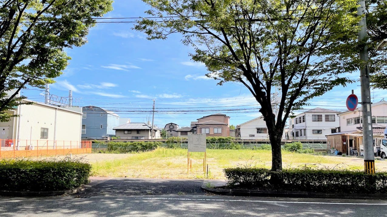 ↑建築予定地の様子。以前は「為岡緑地建設」の倉庫や駐車場などがあった場所です。