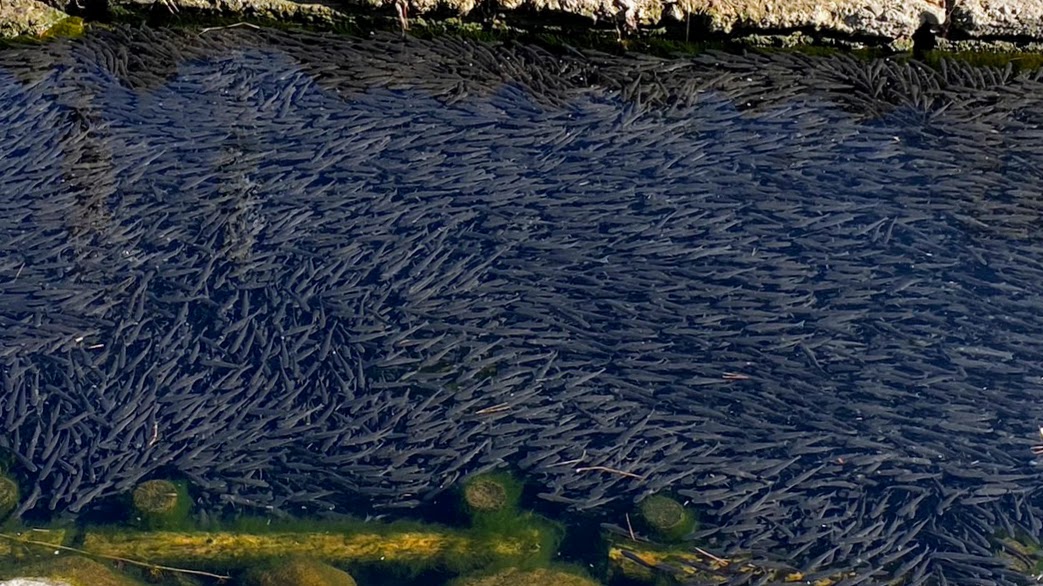 ↑こちらはボラへさんからの投稿写真!め、めちゃめちゃな数のお魚がみちみちのぎゅうぎゅうに…!?都会の通勤電車みたいなことになってます!