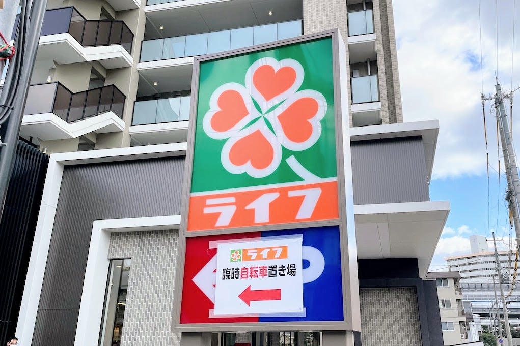 阪神芦屋駅近く、阪神本線の線路沿いにできたマンション「ジオ阪神芦屋」の1階に、スーパーマーケット「ライフ 阪神芦屋店」が1月17日(火)9:30からグランドオープンするそうです〜!