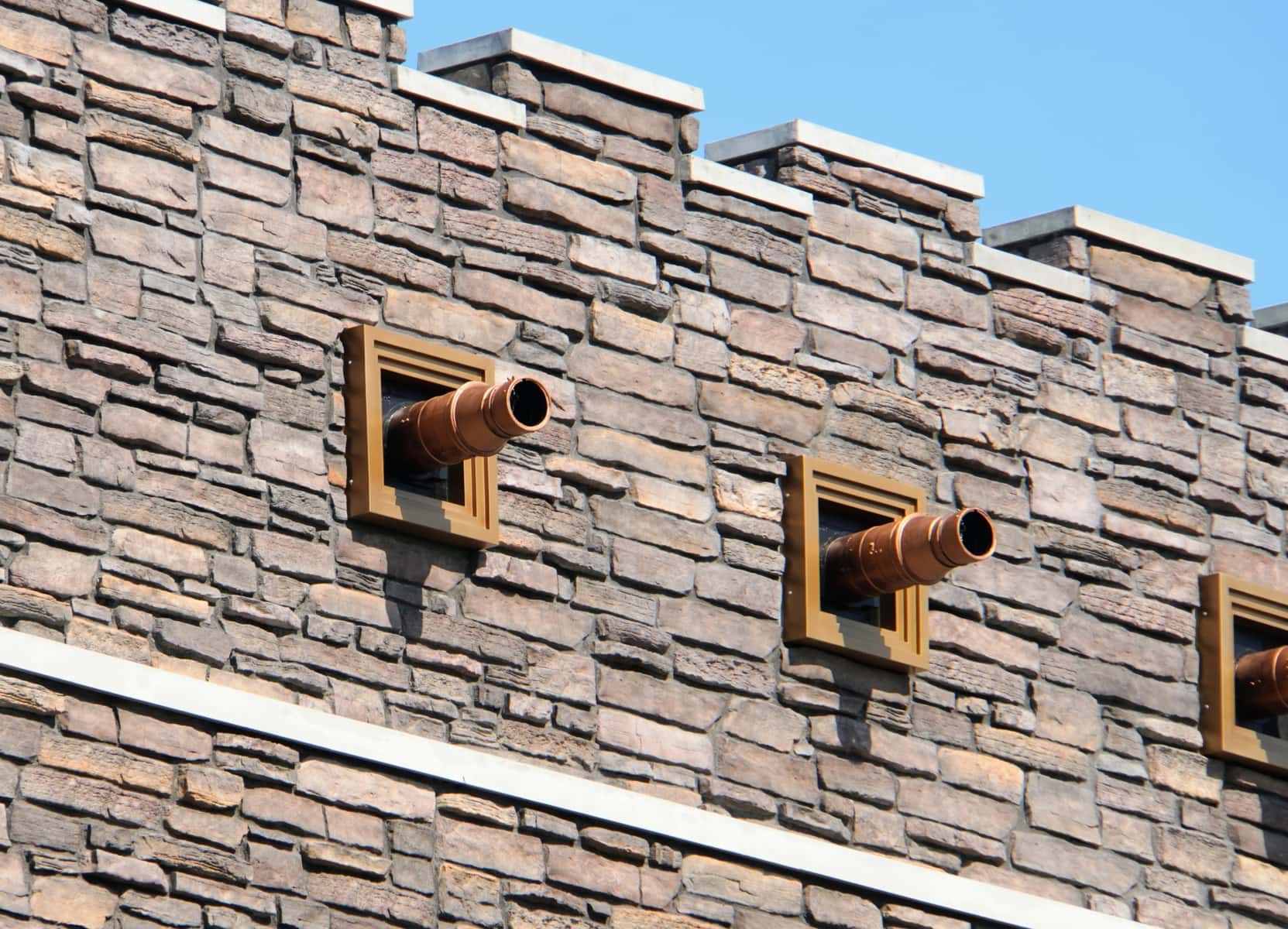 大砲があるのと反対側の面には大砲はなく、新しいビルなのにボロボロの壁に加工されていました。