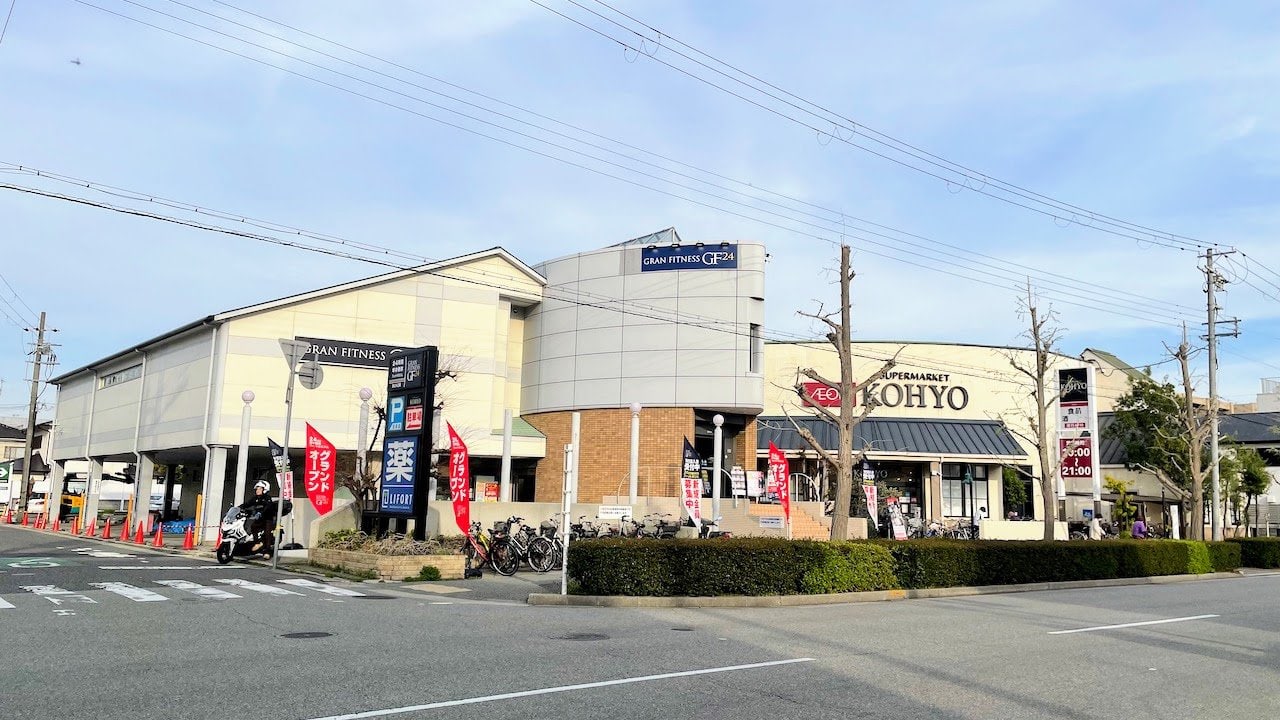 ↑稲荷山線の東側、同じ建物の1階ではドラッグストア「ライフォート打出店」が営業しています。向かって右隣にはスーパーマーケット「コーヨー芦屋南宮」があります。