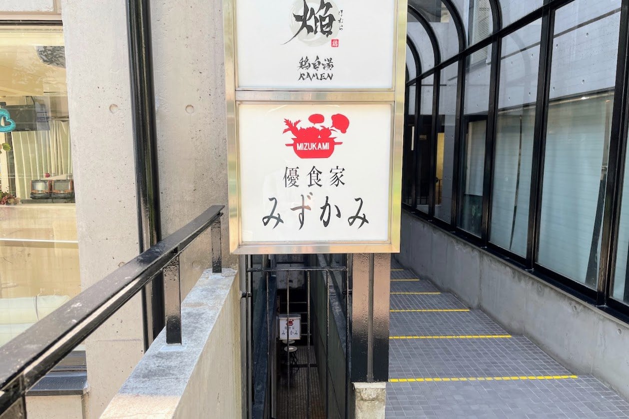 ↑階段を降りた先の地下に「優食家 みずかみ」があります。