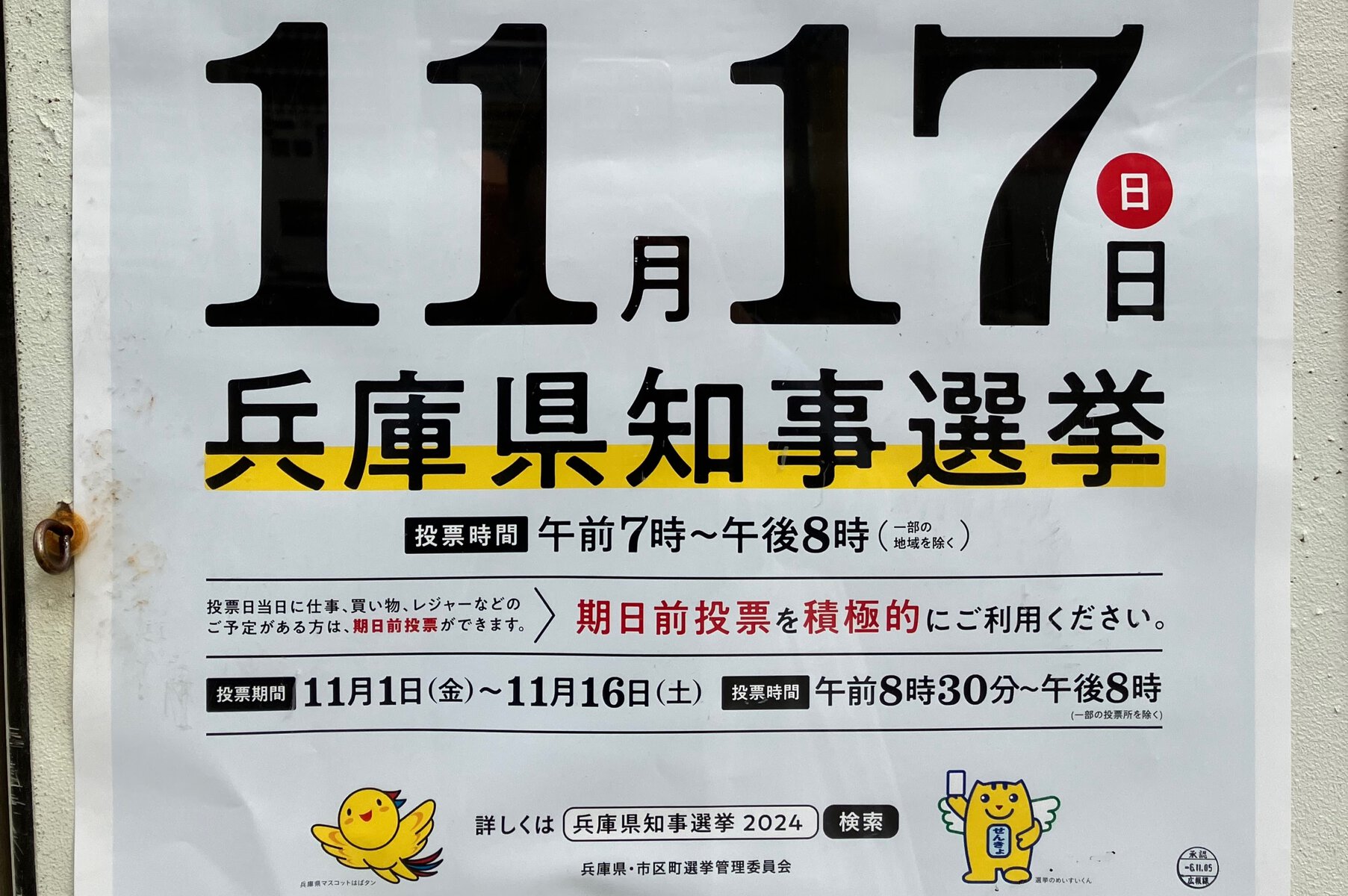 2024年10月31日に兵庫県知事選挙が告示されました。