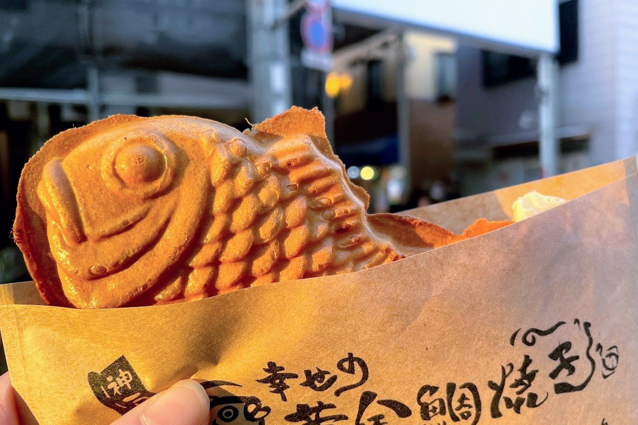 阪神打出駅近く、打出アーケード商店街内に1月10日からオープンした「幸せの黄金鯛焼き 芦屋打出店」で、看板メニューの「黄金鯛焼き」を食べました〜