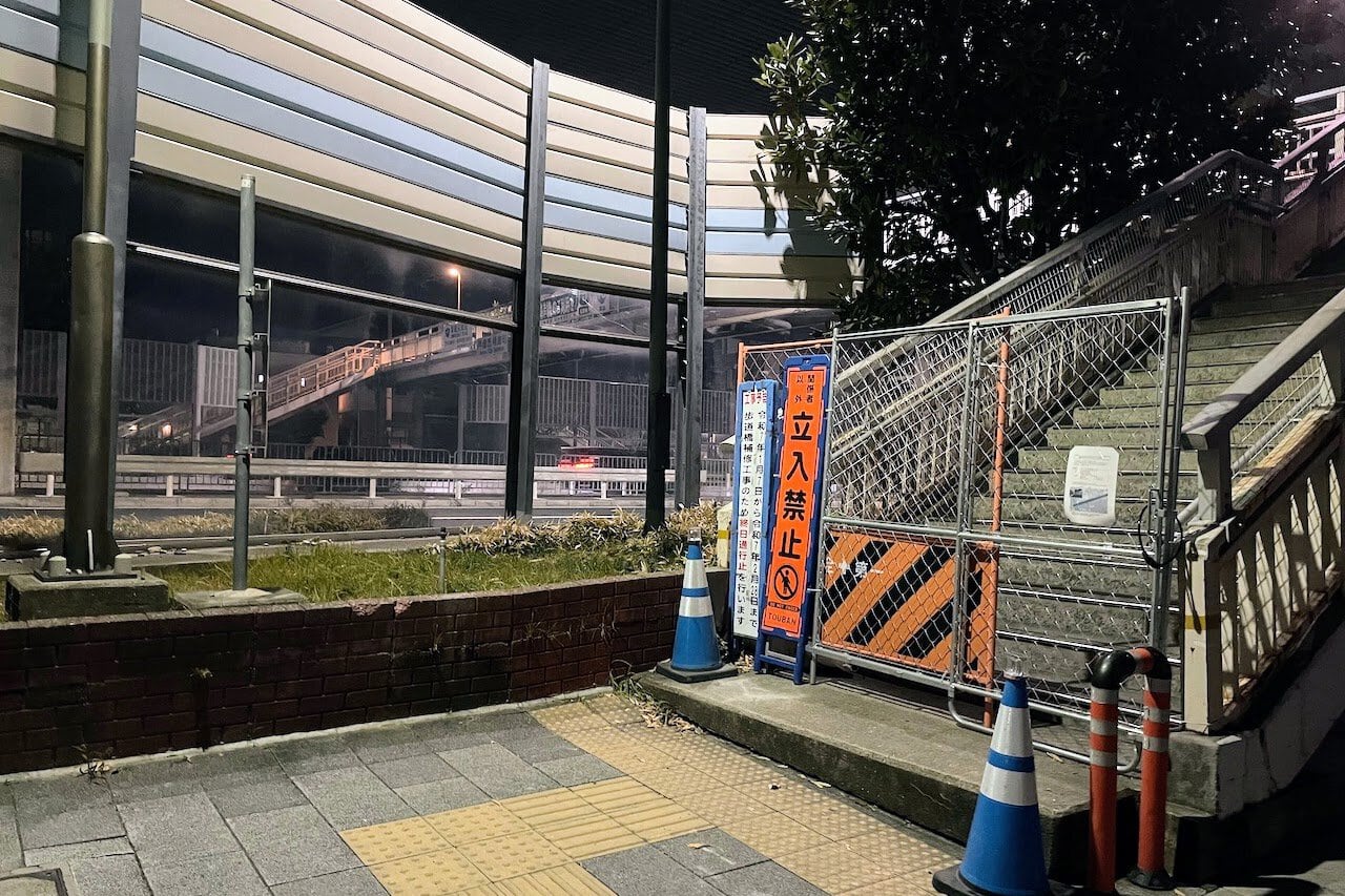 ↑歩道橋入り口に出ている通行止め・立ち入り禁止の看板