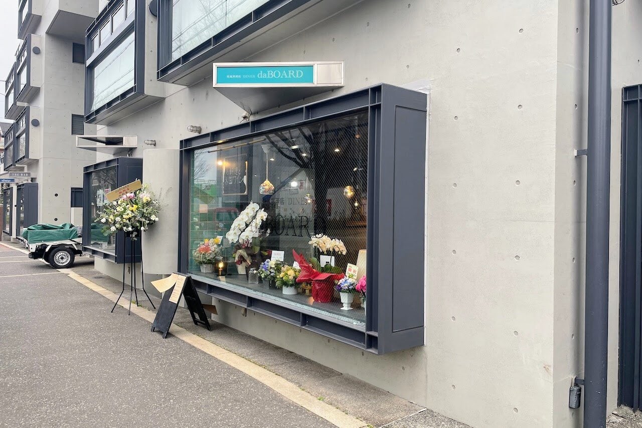 ↑「daBOARD」の外観。以前は和牛専門ステーキハウス「食楽 螢」があった場所です。(「食楽 螢」は店名を「meets 螢」に変え、西宮市芦原町へ移転済)