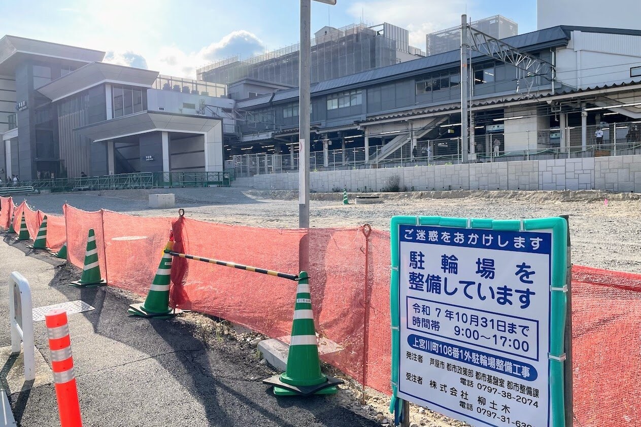 JR芦屋駅の南口を出てすぐ、駅舎の横(ホームの南)の空き地には駐輪場を作ってるみたいです。