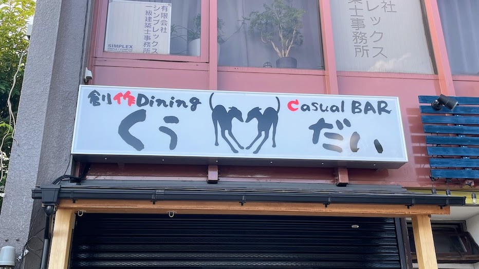 ↑「創作Diningくう Casual Barだい」の外観。以前は「とんかつひぐち」があった場所です。