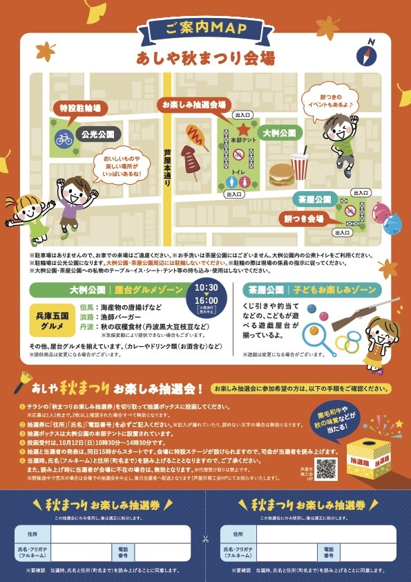 ※抽選会に参加したい方はチラシの抽選券を切り取り、当日10:30〜14:30に大桝公園の本部テントに投函。