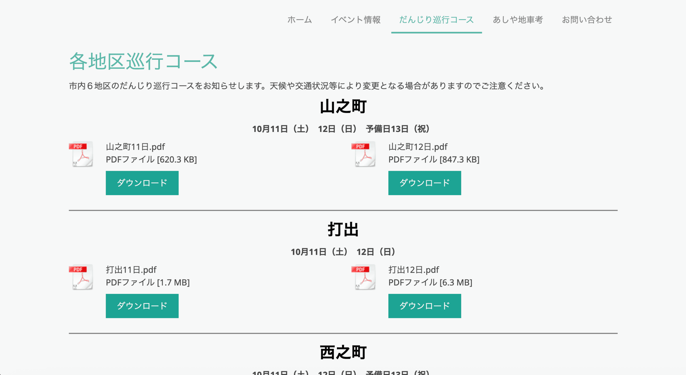 ↑各だんじりの巡行コースはpdfで公開されています〜