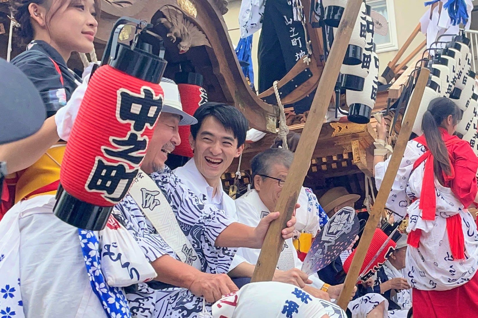 そして今年も!髙島崚輔芦屋市長が中之町(旧精道)地車に乗ってましたよ〜!