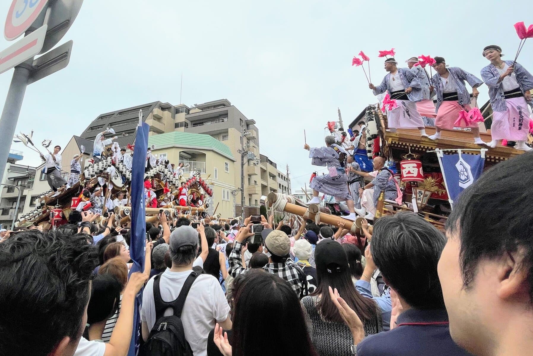 そしてフィナーレでは六地区のだんじりが交差点に集まり、全台で宮入りを披露〜!観客もいっぱいでめちゃめちゃ盛り上がってました!