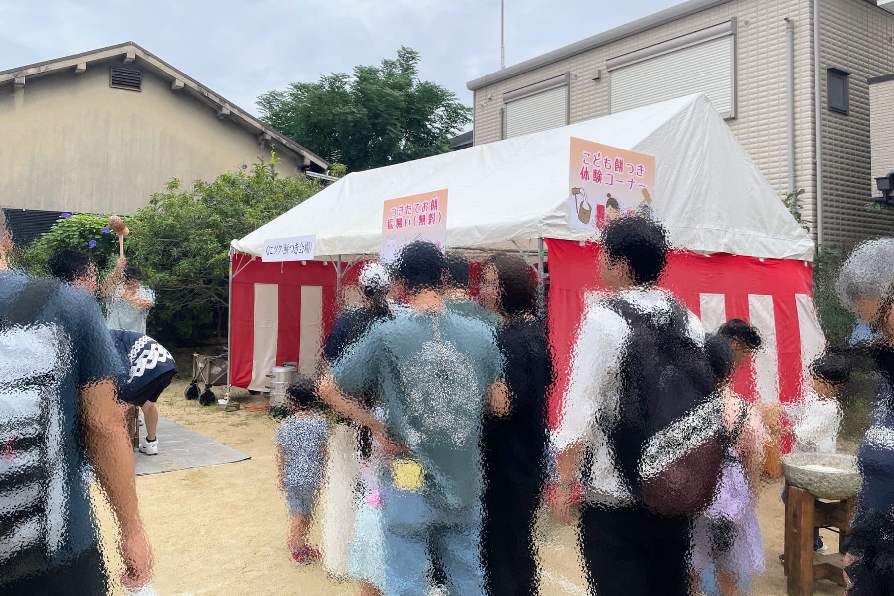 ↑今年の茶屋公園会場は万博会場並み!?の賑わいに。餅つきだけでなく、くじ引きやゲーム縁日などどれも行列がすごかったです!