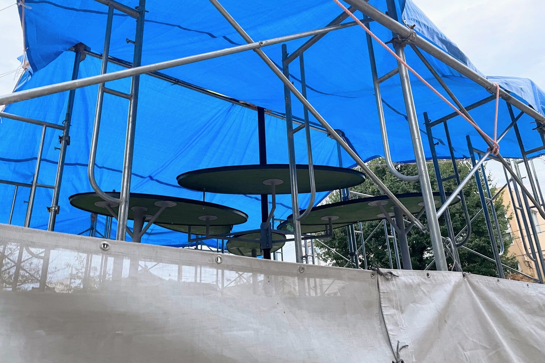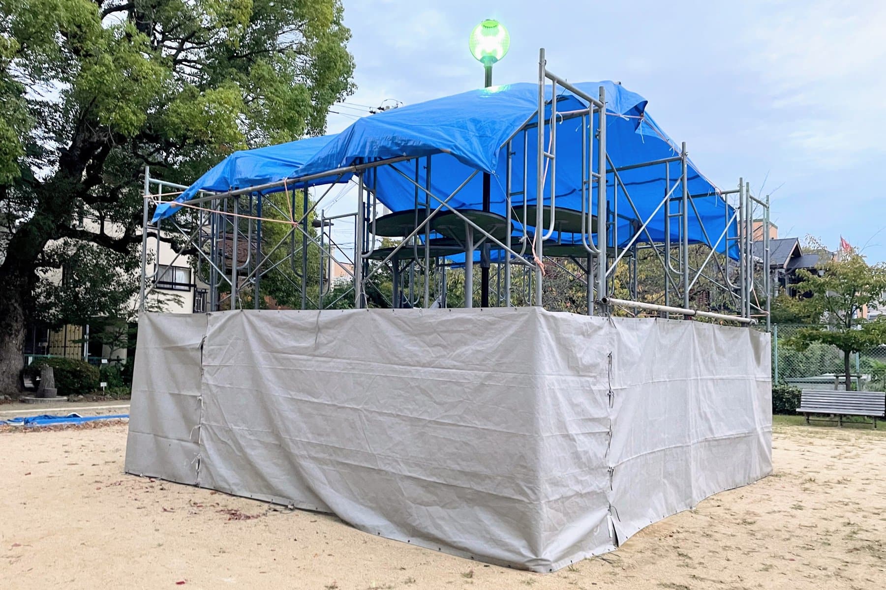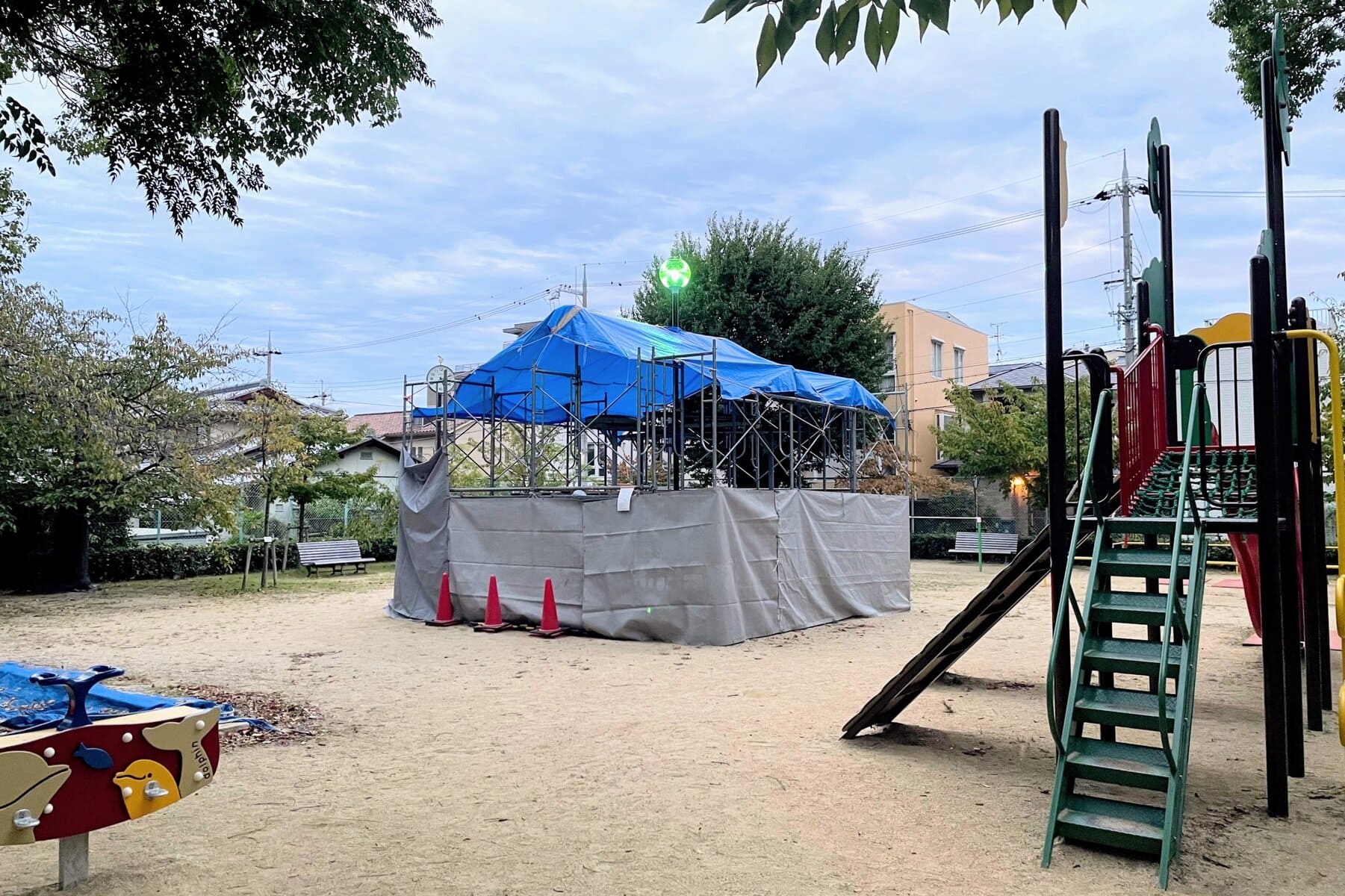 ↑まだシートに覆われていますが、結構大きな遊具?ベンチ?みたいなものができそう。