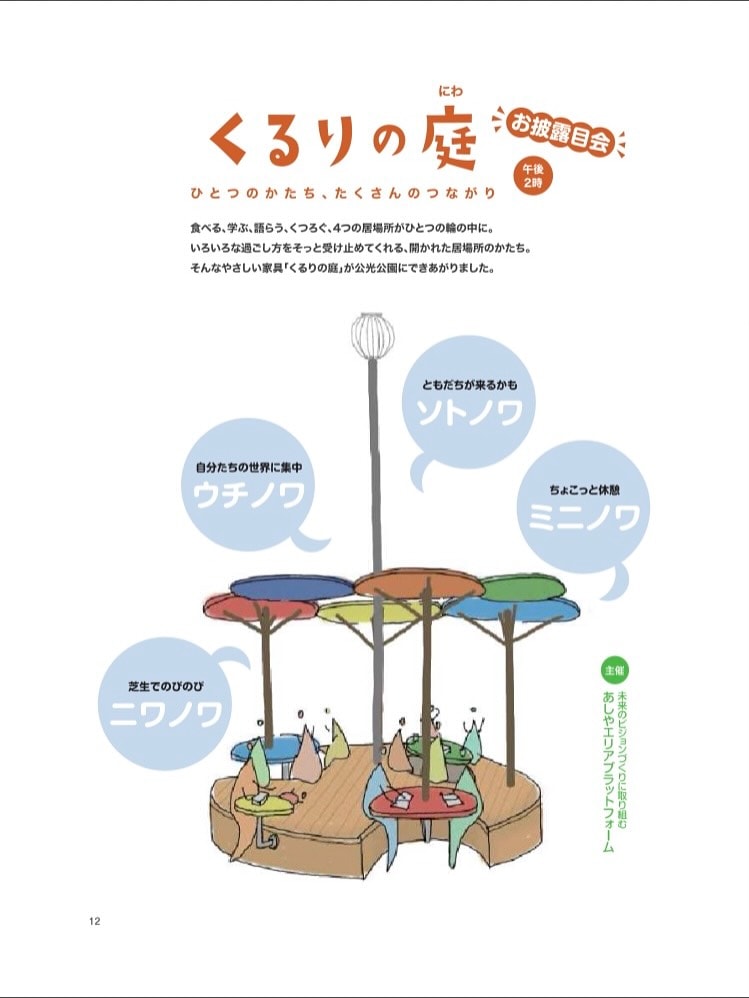 どうやらこれは「くるりの庭」というもので、座って休憩したり、おしゃべりしたり、ご飯食べたり、勉強したり、いろんな過ごし方ができる設備なのだそう〜