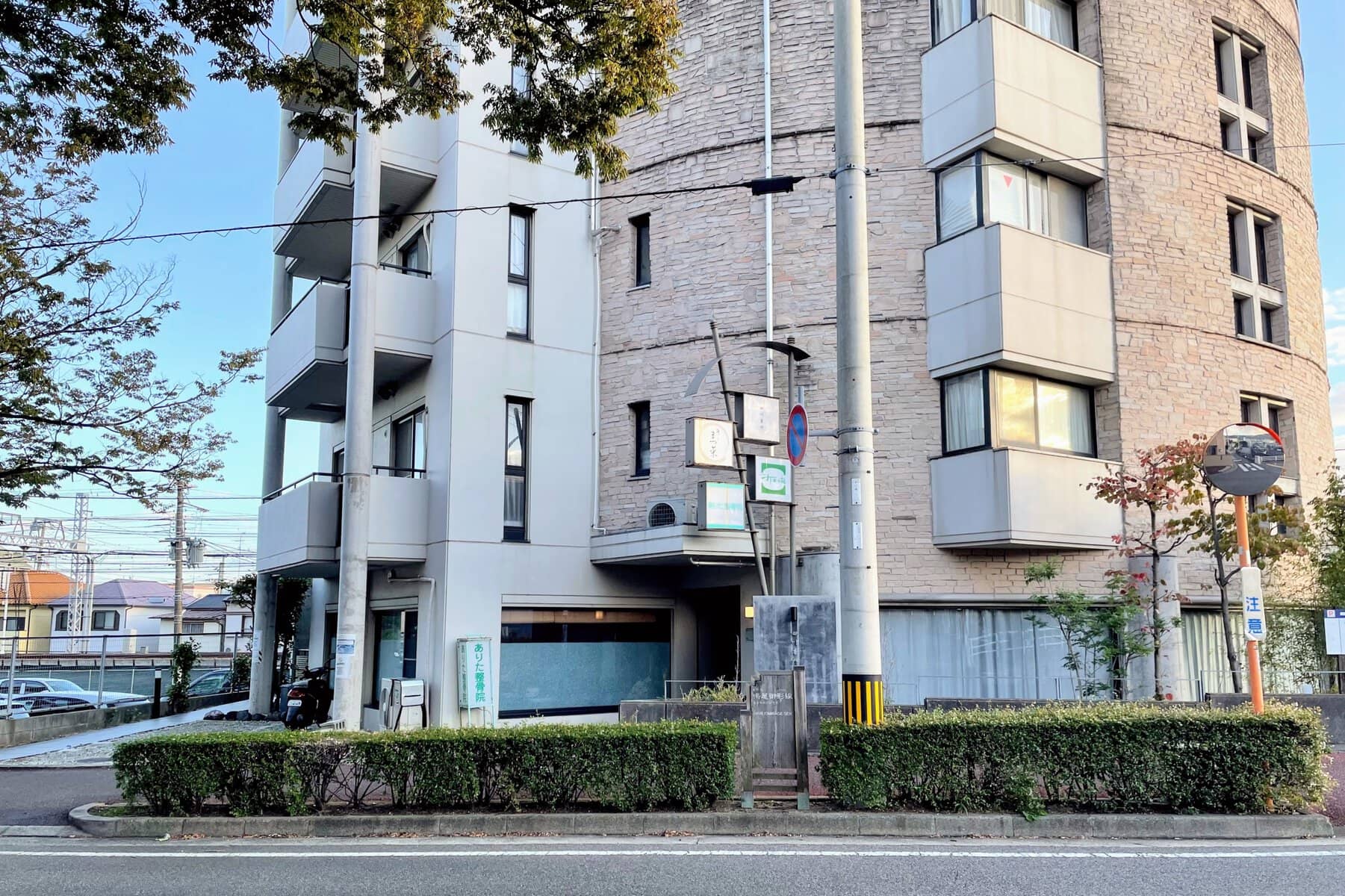 ↑鳴尾御影線と宮川地蔵通りの交差点南東角にある建物の1階。同じ建物には中華料理店「四川唐門」や「ありた整骨院」などが入っています。