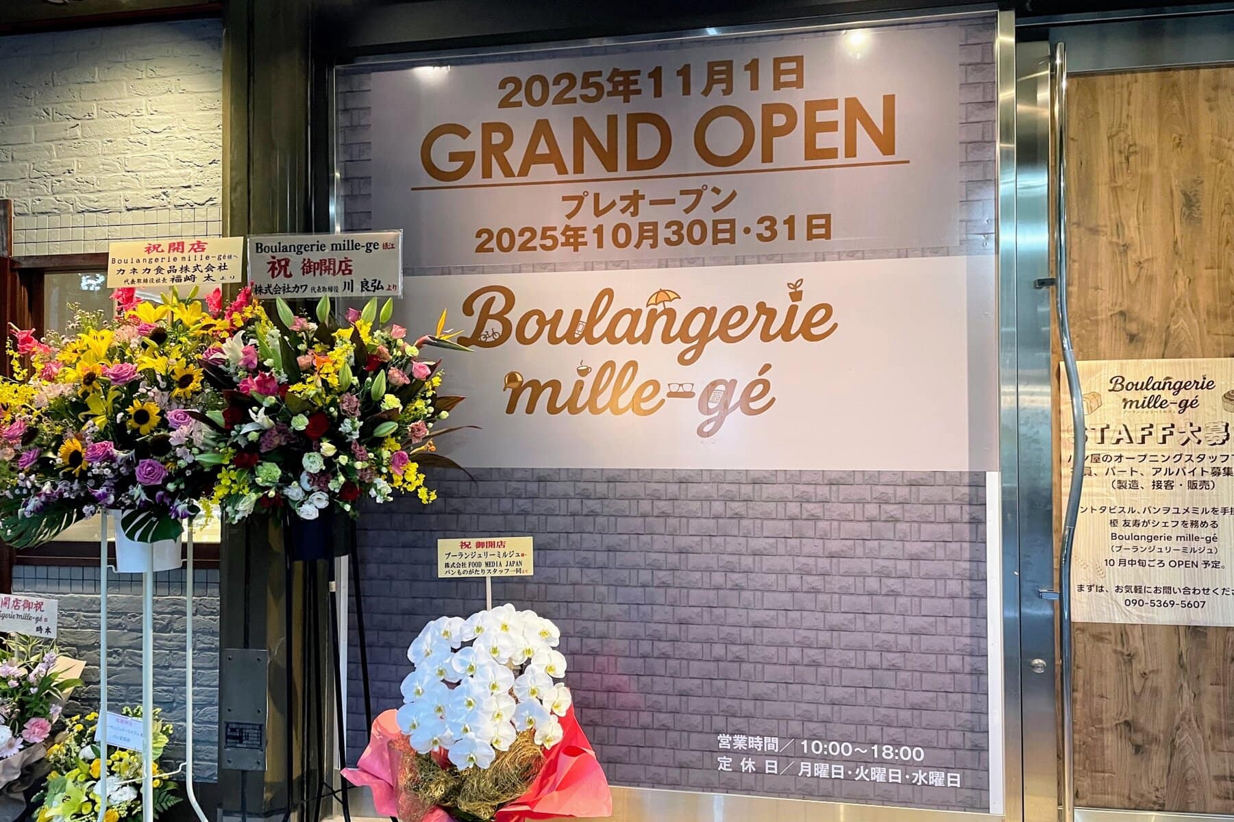 JR芦屋駅近く、駅前通り沿いの「アルパ芦屋」1階にベーカリー「Boulangerie mille-gé(ブーランジュリーミルジュ)」が11月1日からグランドオープンしていました〜
