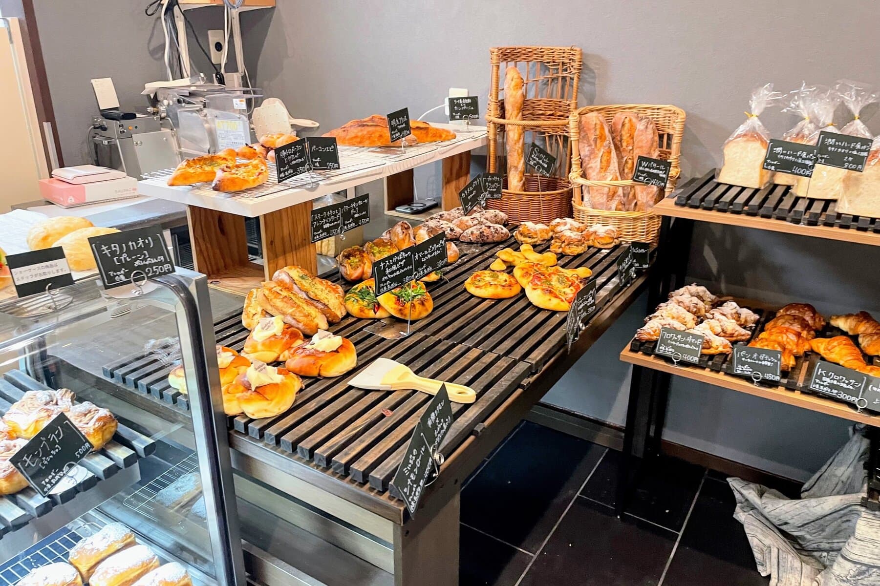 ↑バゲットや惣菜パン、看板パンの「ミルジュのシナモンロール」などの菓子パンも〜