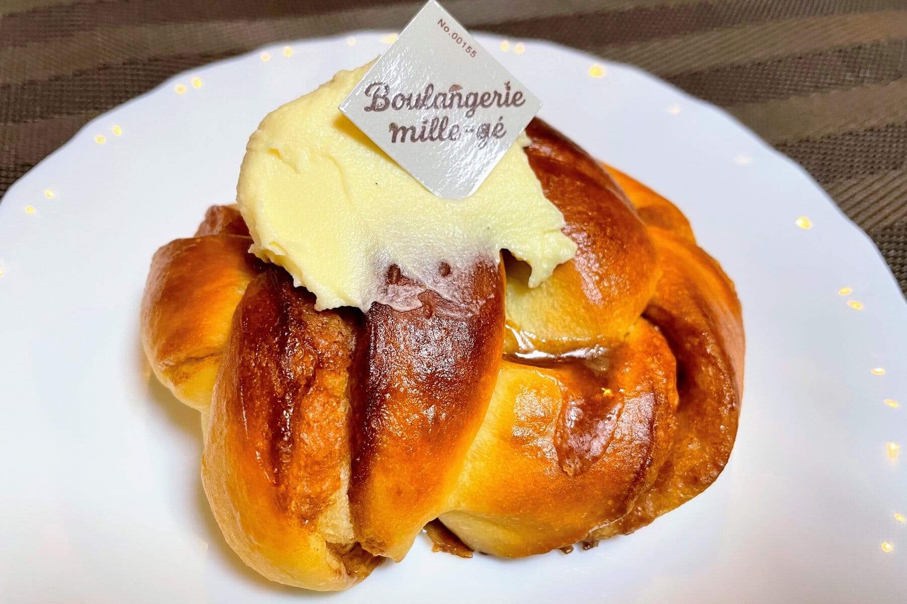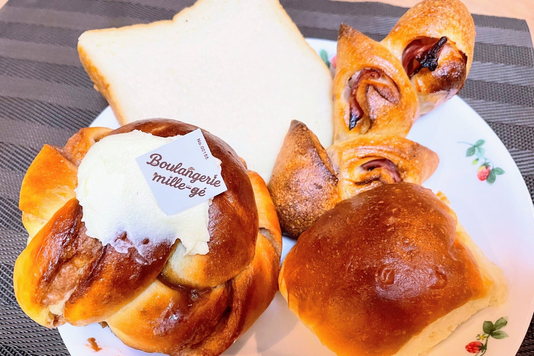 「Boulangerie mille-gé」の「ミルジュのシナモンロール」などパンいろいろ