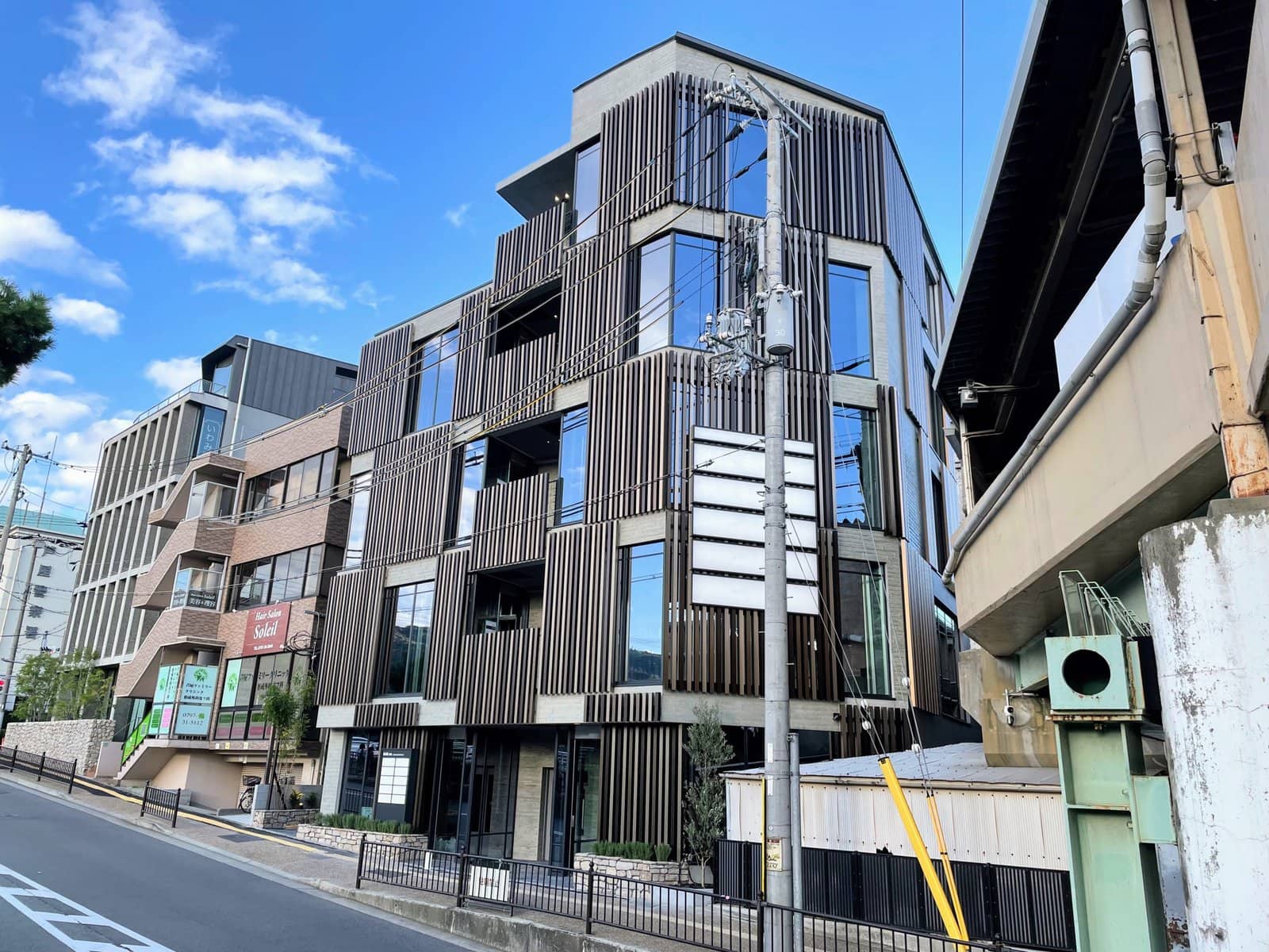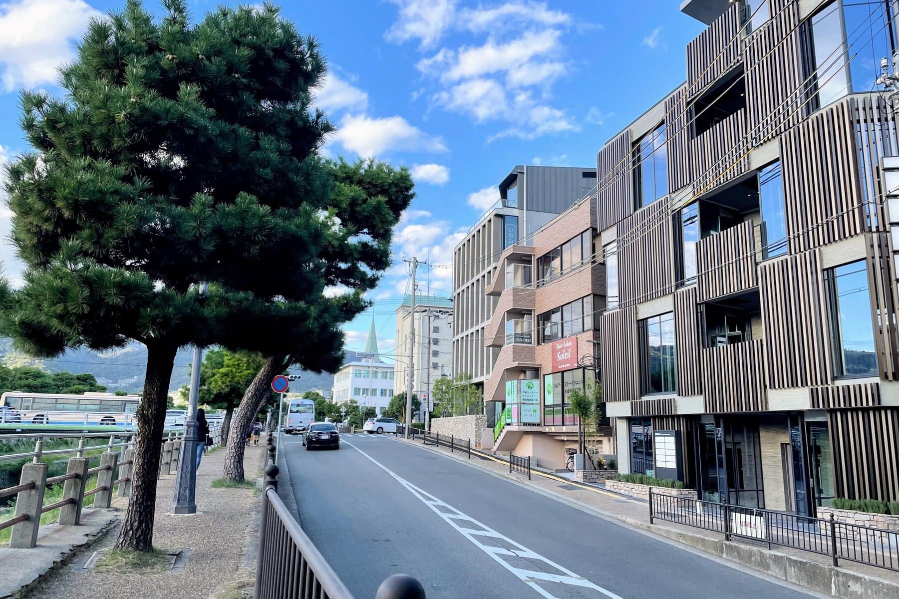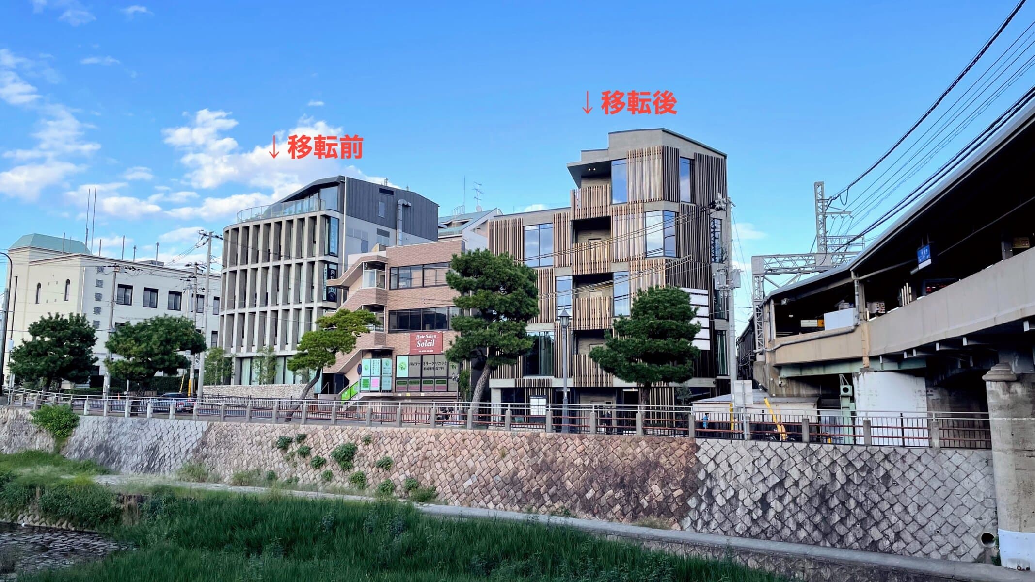 ↑芦屋川沿い、阪神芦屋駅のすぐ北側に新築された医療ビルです。