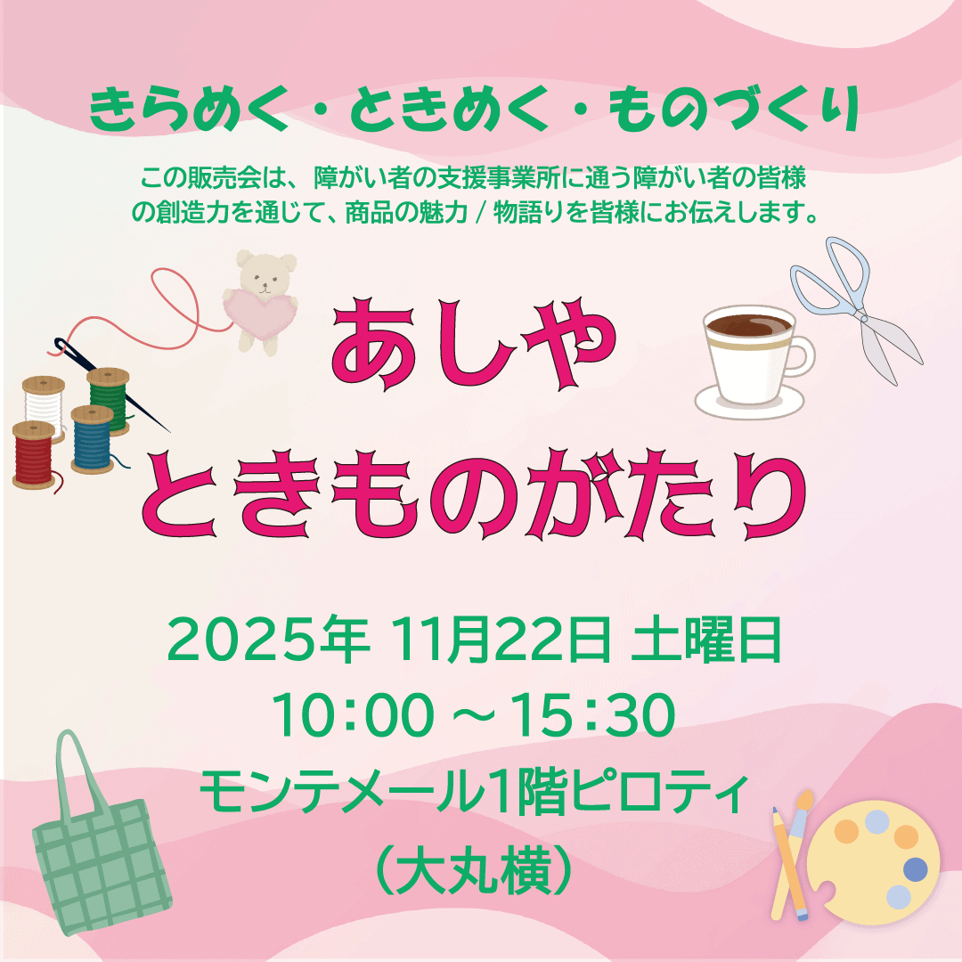 “きらめき”と“ときめき”が詰まった、ほかでは手に入らないような個性的な雑貨が集まりそう!駅前の立ち寄りやすい場所ですし、ハンドメイド雑貨好きはふらっと覗いてみてはいかがでしょうか〜
