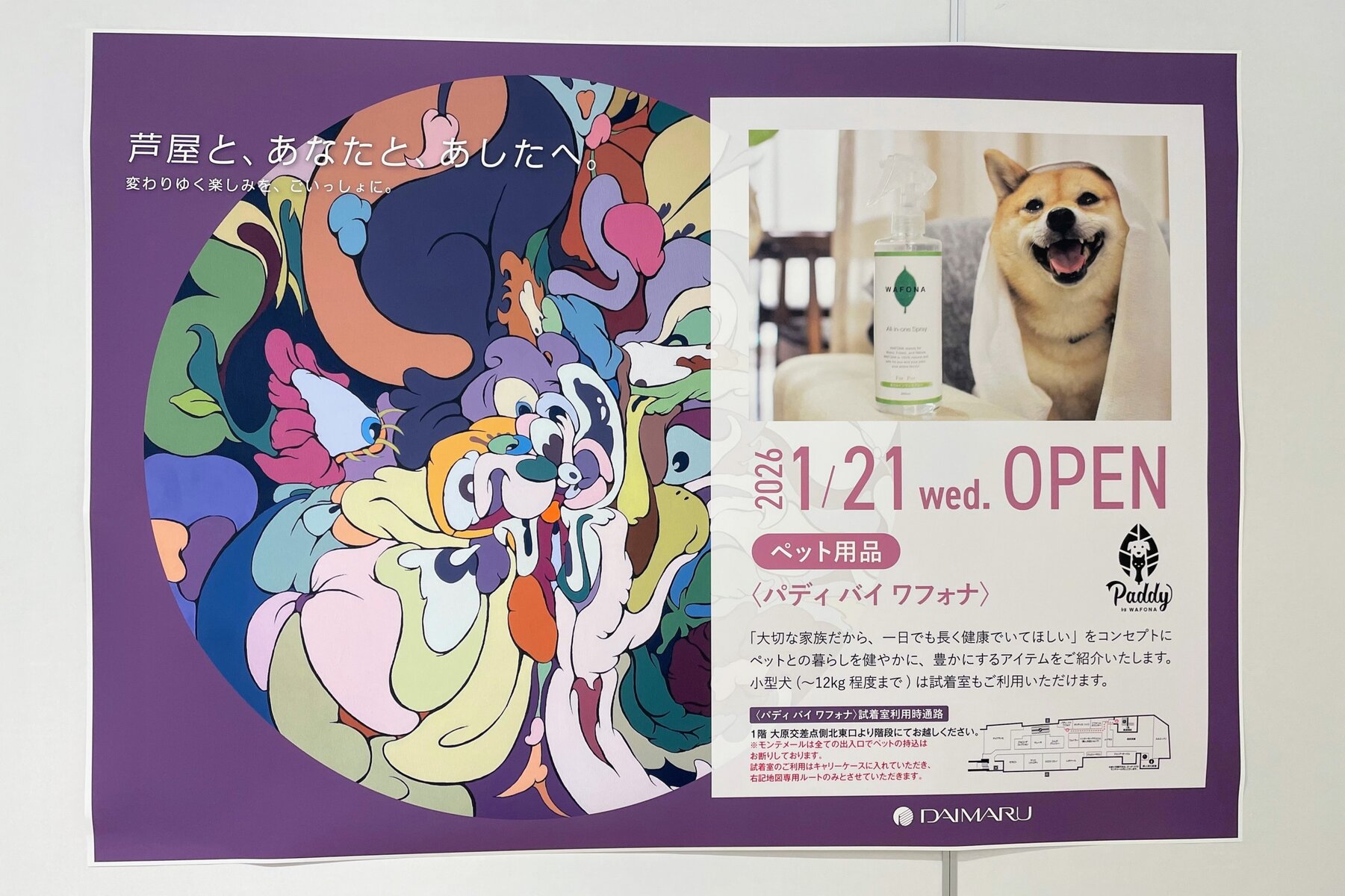 JR芦屋駅直結の百貨店「大丸芦屋店」2階に、ペット用品専門店「Paddy by WAFONA(パディ バイ ワフォナ) 大丸芦屋店」が1月21日(水)からオープンするようです〜