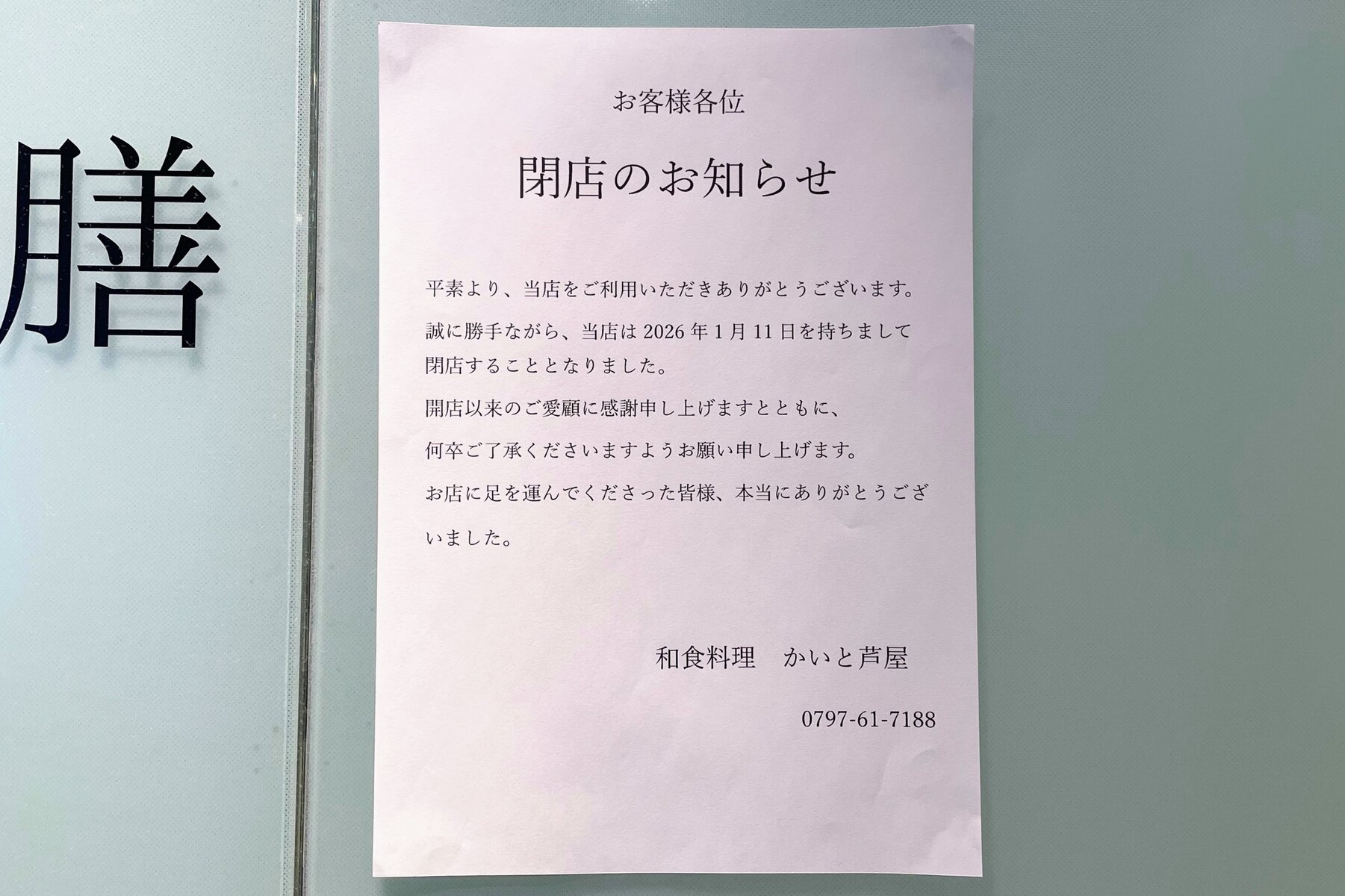 「和食料理かいと」は姫路にもお店があるようなので、来年1月の閉店後に「またあの味が食べたい!」という時は姫路に行くといいかも。