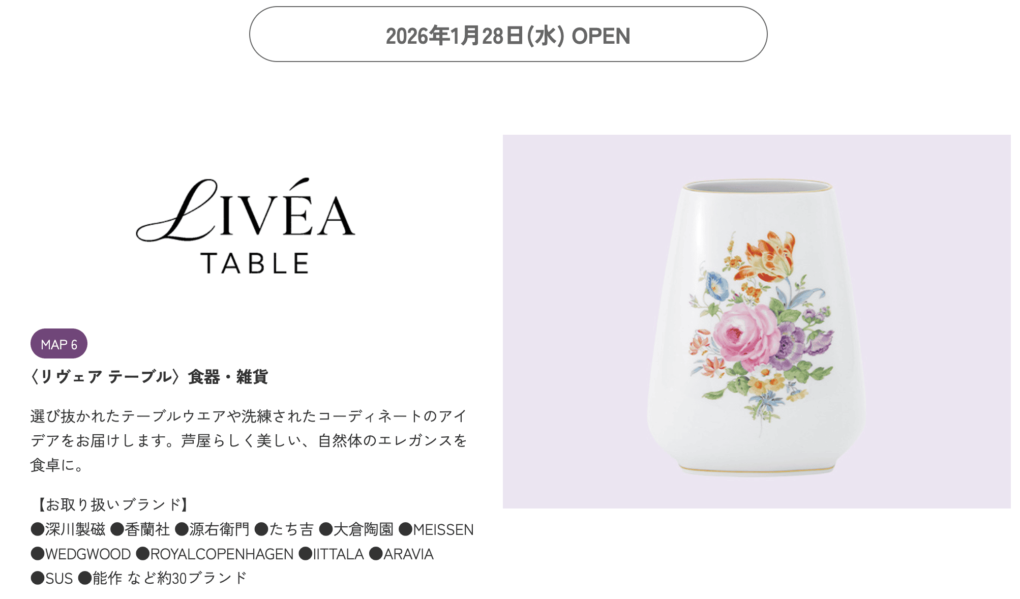 JR芦屋駅直結の百貨店「大丸 芦屋店」2階に、食器・雑貨店「リヴェア テーブル」が来年1月28日(水)からオープン予定みたいです〜
