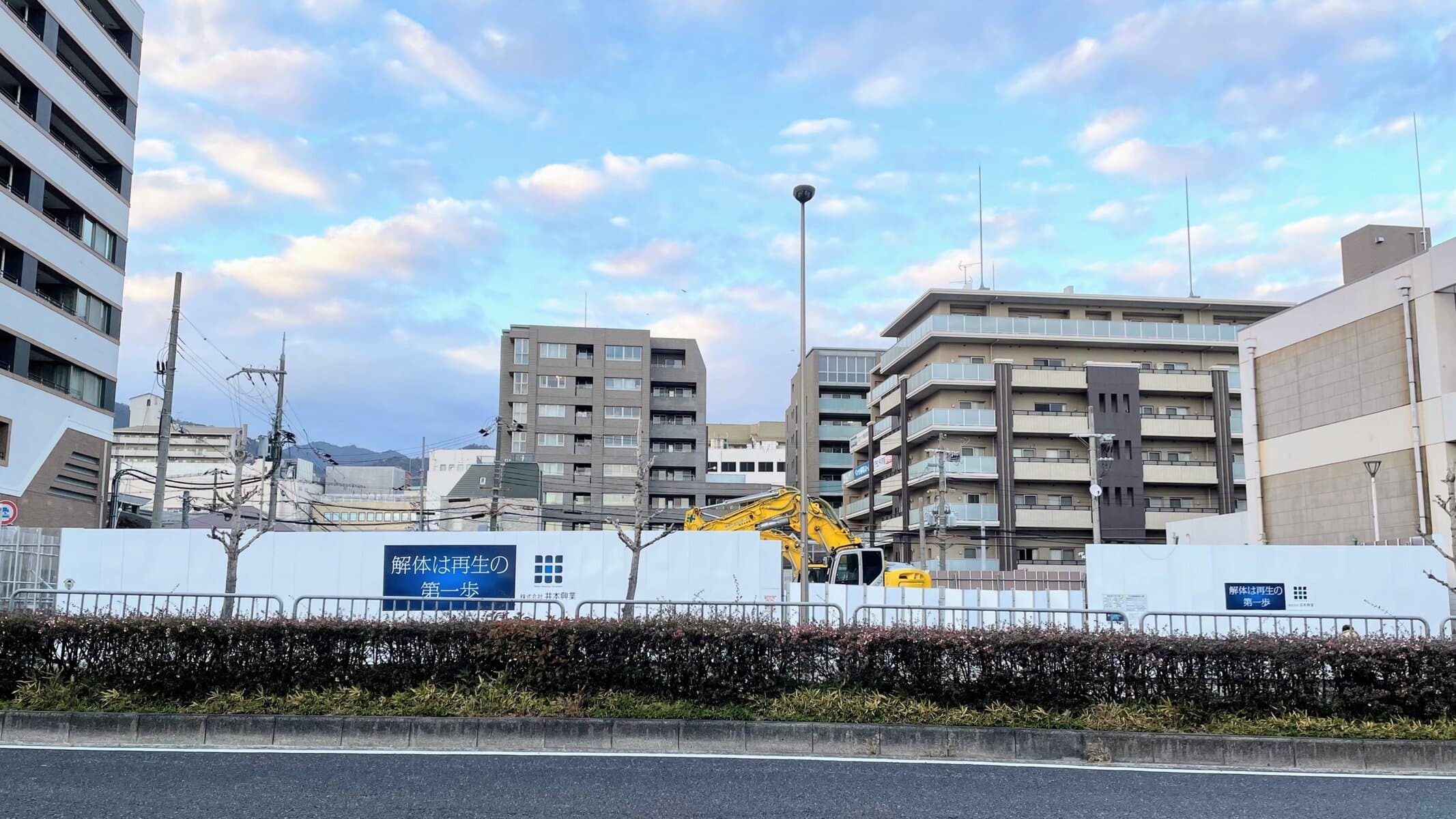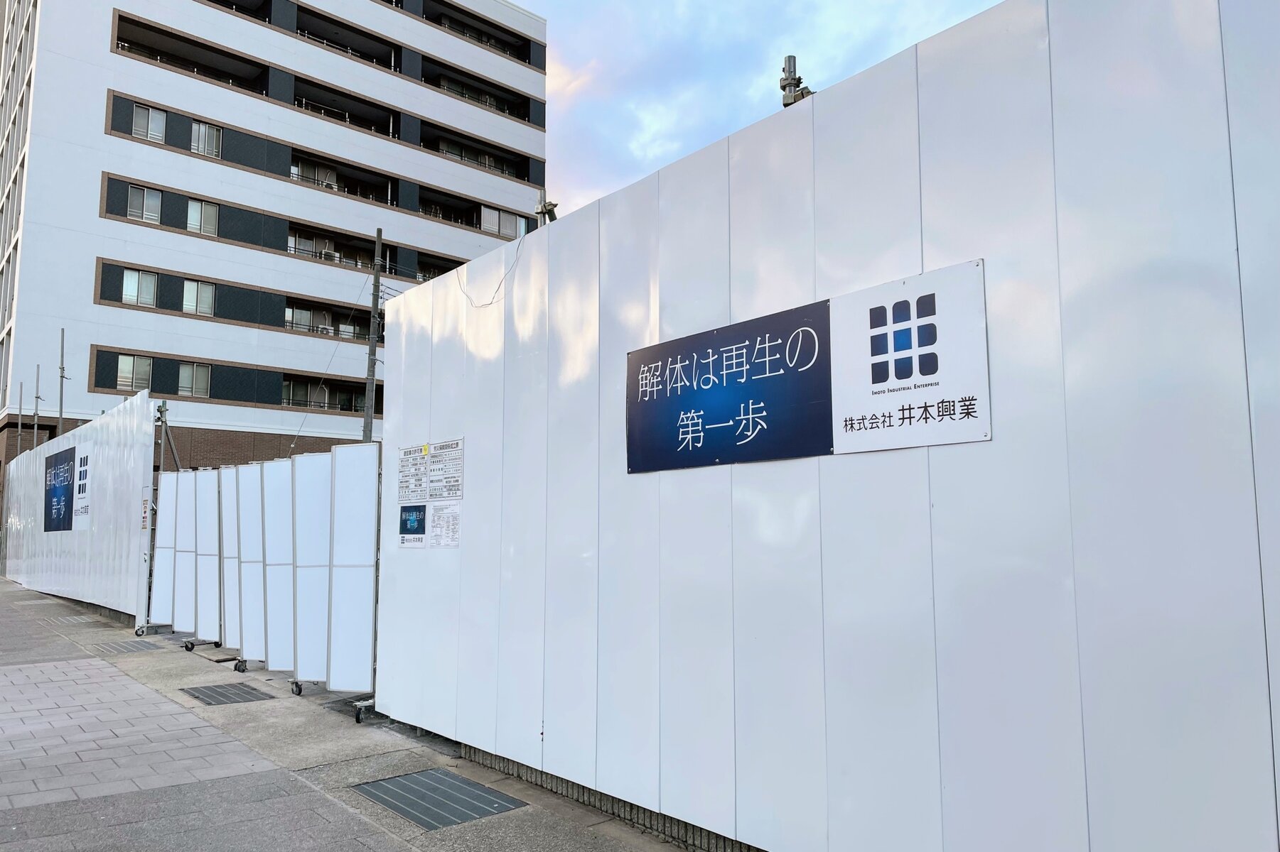 ↑周囲に白い壁が建てられて、解体工事が行われていました。「解体は再生の第一歩」名言ですね〜