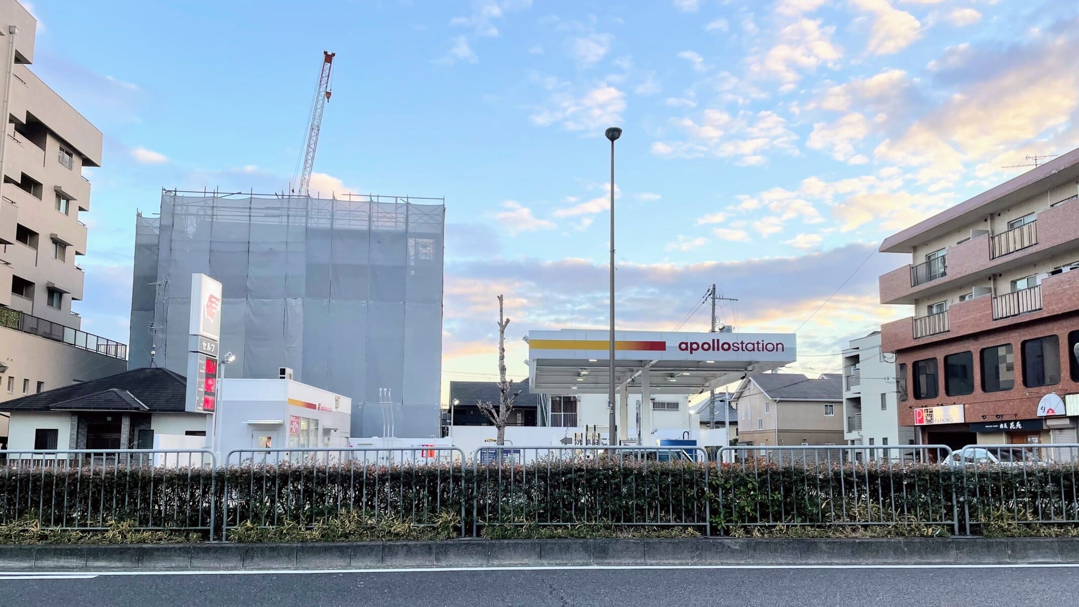 ↑向かいは、ガソリンスタンド「apollostation セルフ芦屋SS」などがあります。