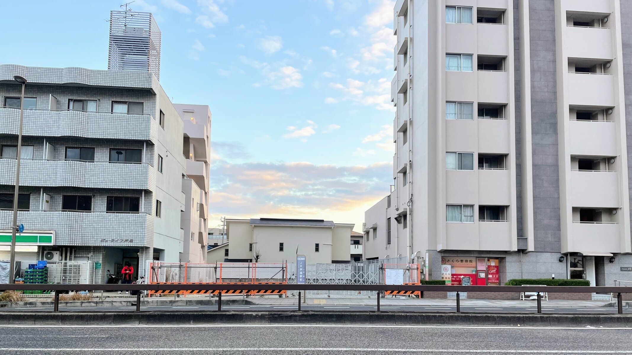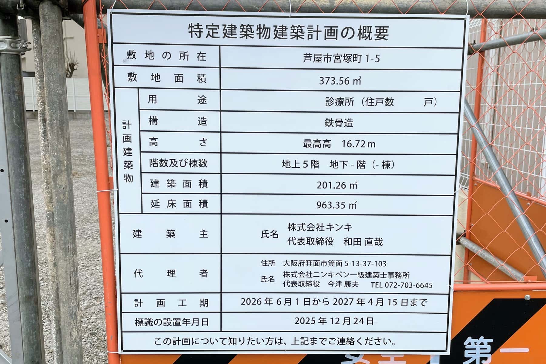 ↑建築計画の看板が出ていました。用途は「診療所」、鉄骨造の地上5階建てで、計画工期は今年6月1日〜来年4月15日となっています。