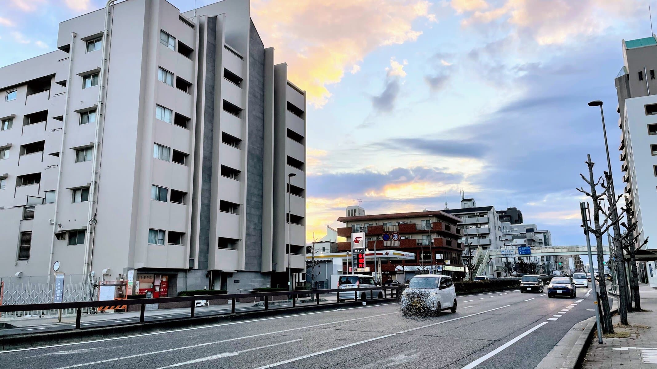 ↑反対側(西)へ行くと、ガソリンスタンド「apollostation セルフ芦屋SS」、「中山歯科」、自転車店「リンリン芦屋店」、「サーティワンアイスクリーム 芦屋ロードサイド店」などがあり、芦屋川方面です。