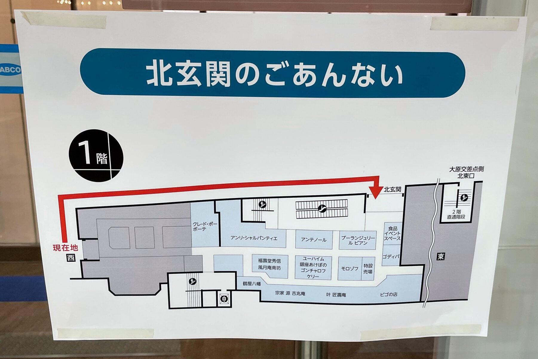 ↑西出入り口の閉鎖中は、東側にある「北玄関」を利用するように案内図が出ていました。